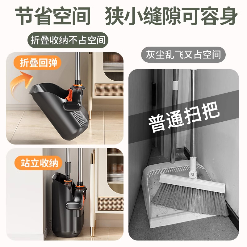 (2-piece set) cream and coffee-colored [folding storage] broom + dustpan