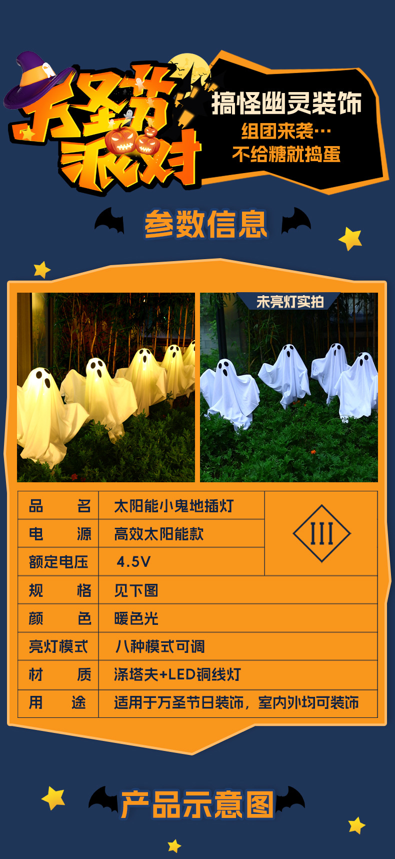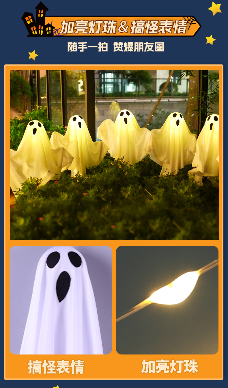 glowing ghost ground lamp halloween event holiday party dress up outdoor courtyard horror atmosphere scene layout 中文版