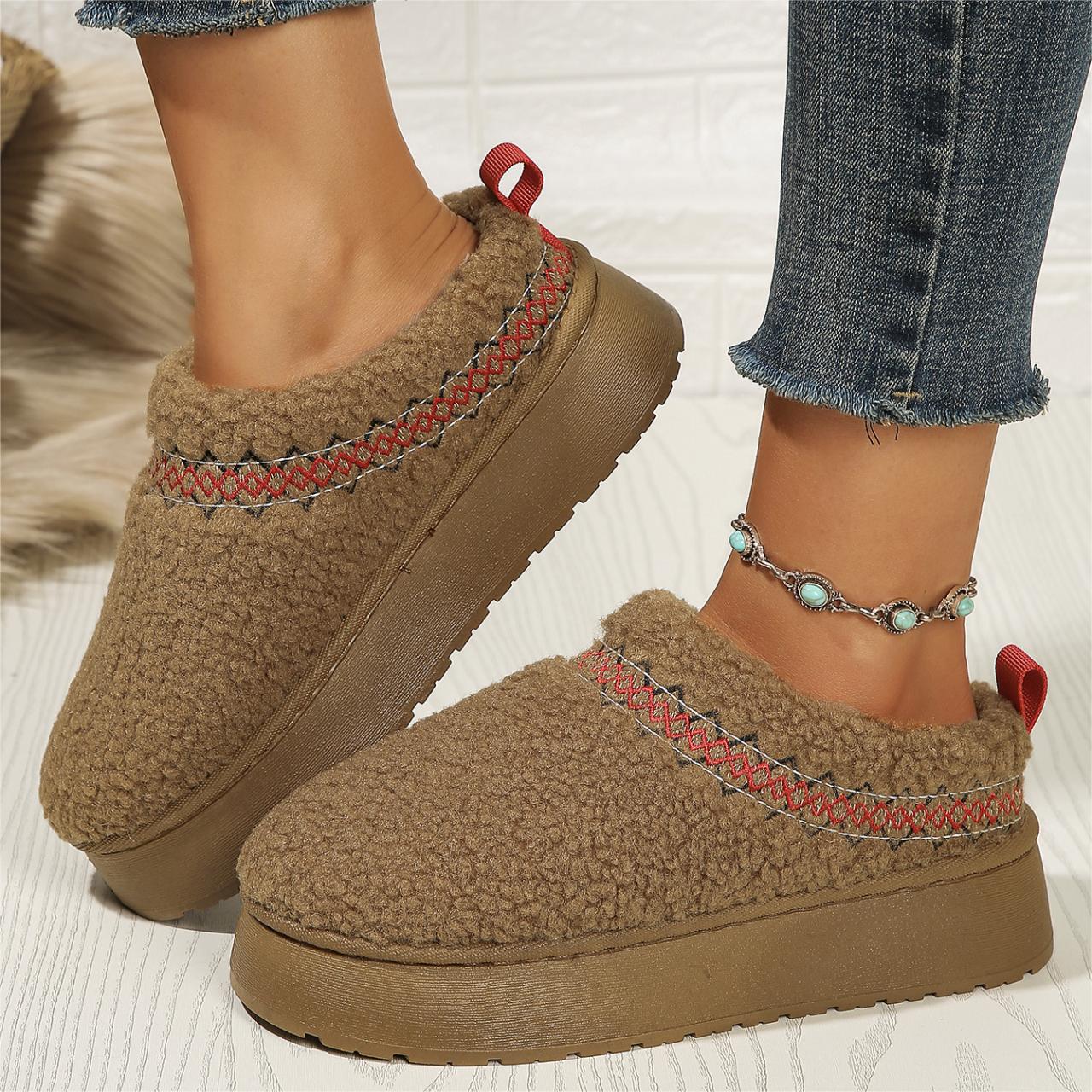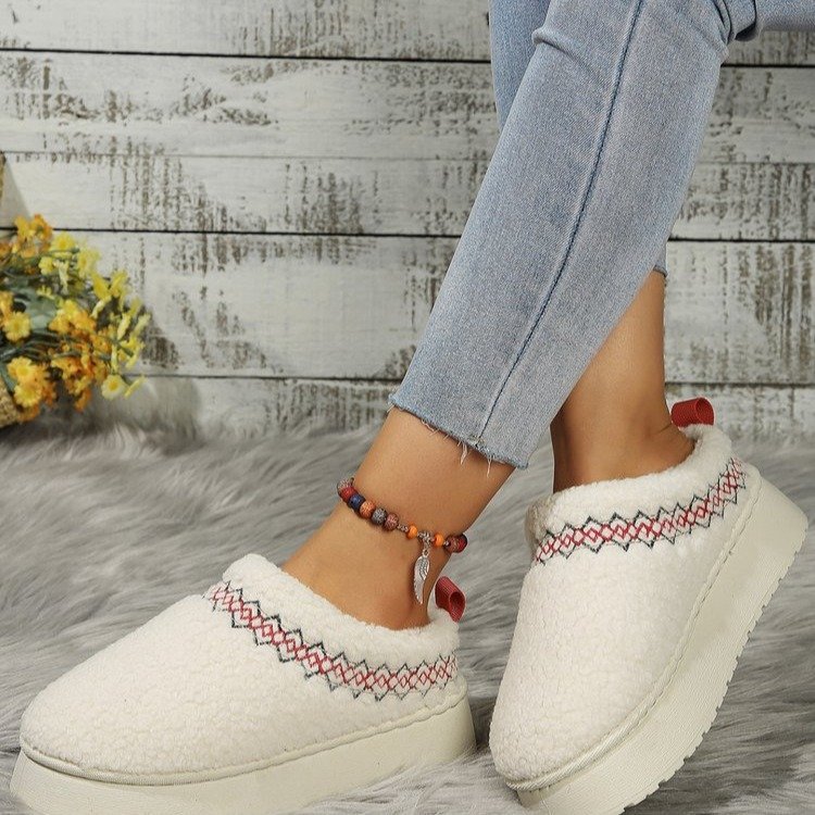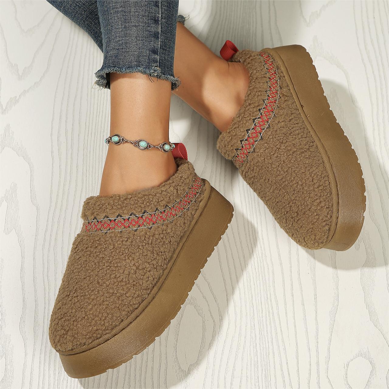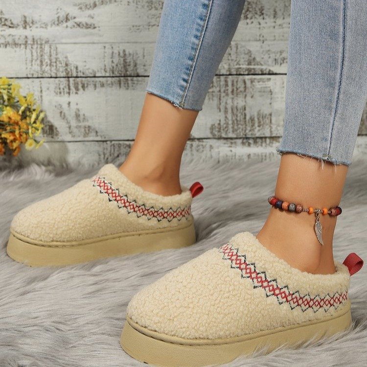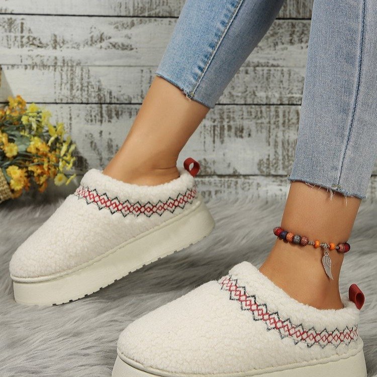 thick-soled lamb fur ethnic style snow boots for women 2025 new toe box for outdoors fleece-lined thermal cotton slippers 中文版