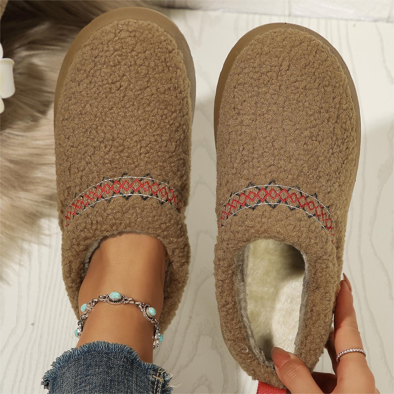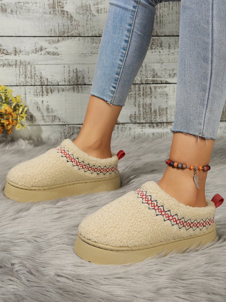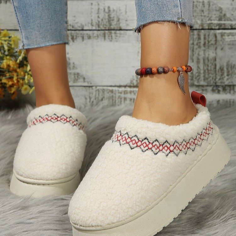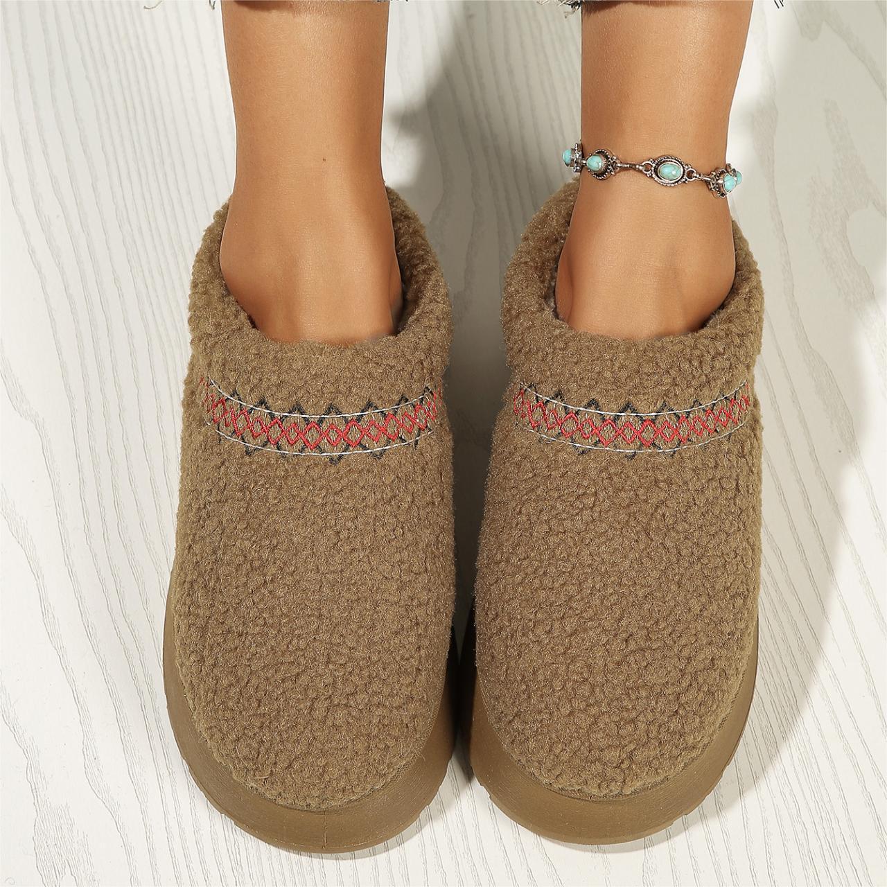 thick-soled lamb fur ethnic style snow boots for women 2025 new toe box for outdoors fleece-lined thermal cotton slippers 中文版