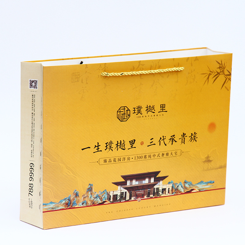 extra thick and durable kraft paper new chinese style gift bag enterprise coated foldable high-end white cardboard handbag 中文版