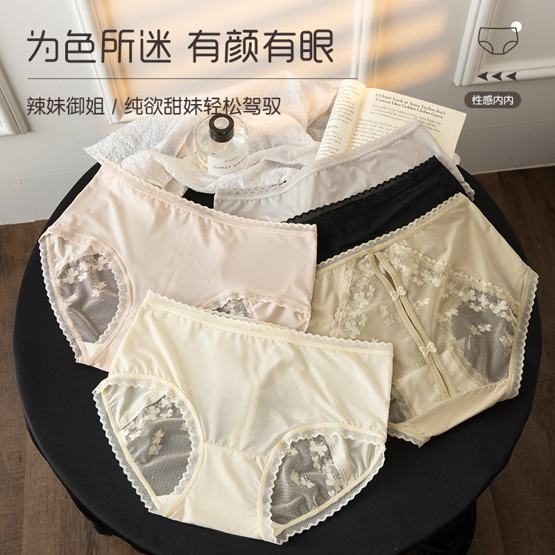 lady sexy lace underwear female mulberry silk protein plus size girls wholesale summer ice silk pure desire style 中文版