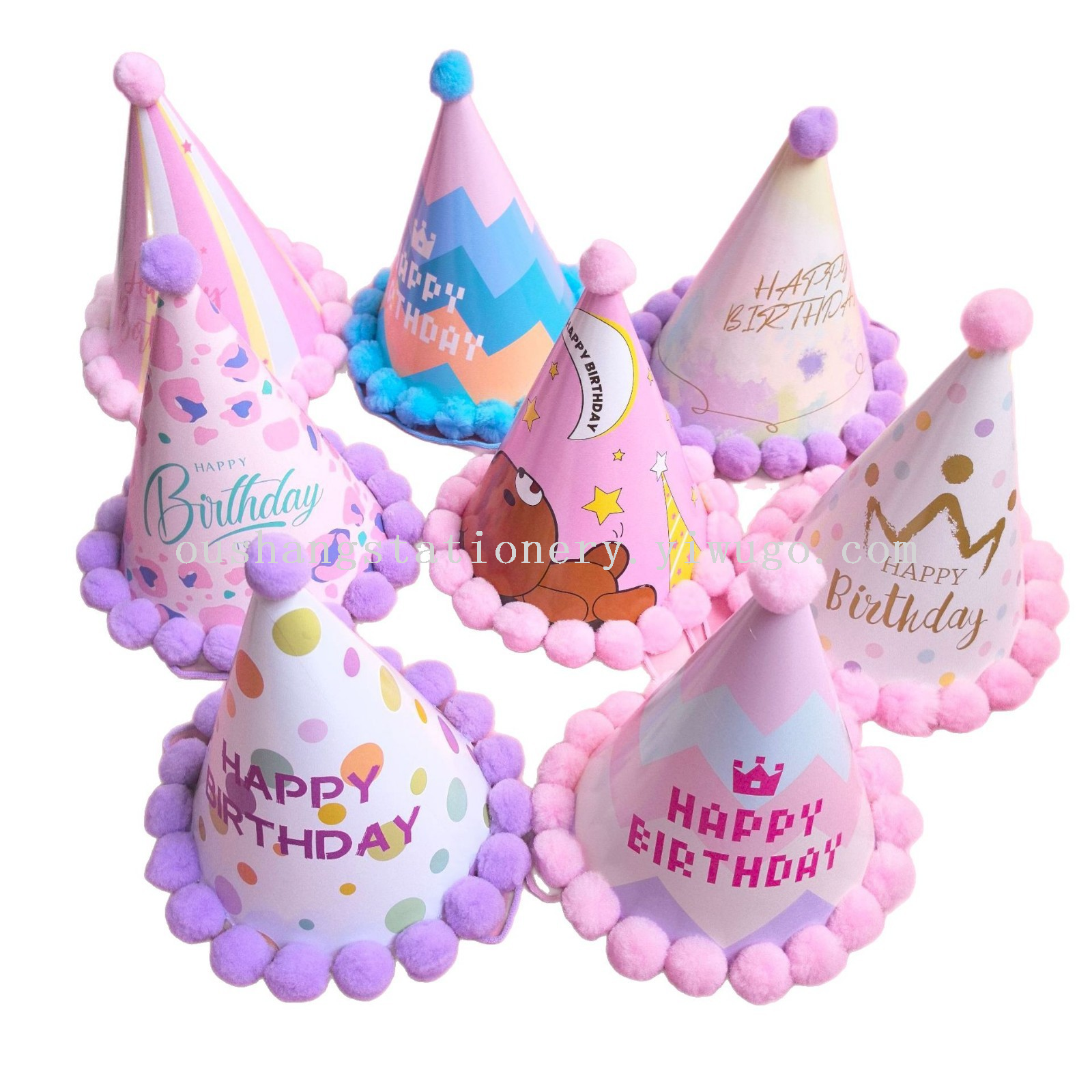 New Goddess Pink Birthday Hat with Pompom and Fresh Style