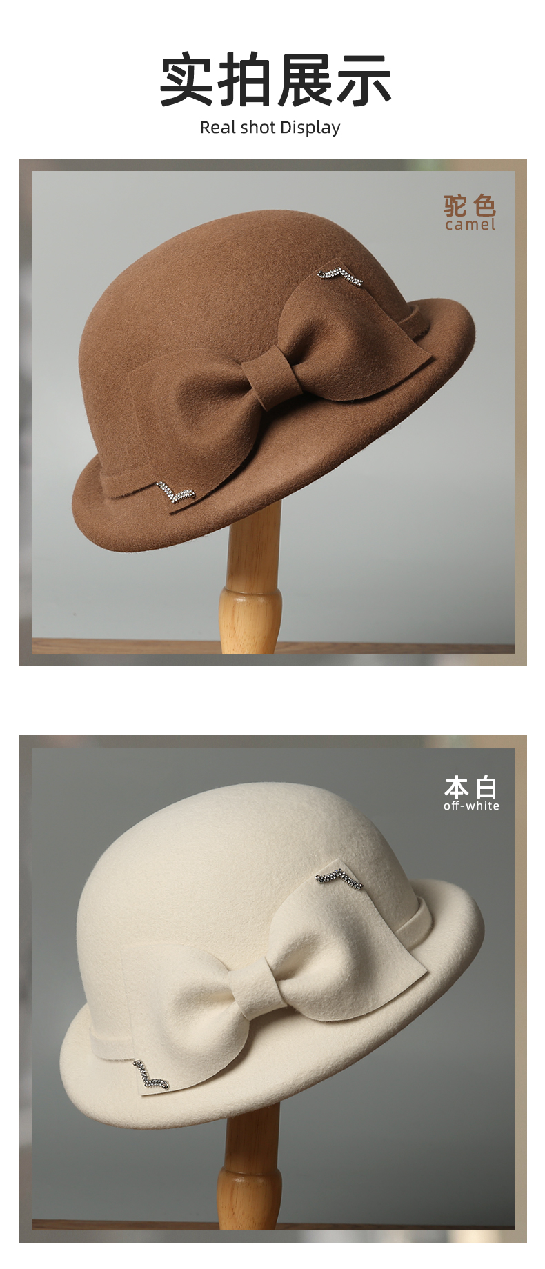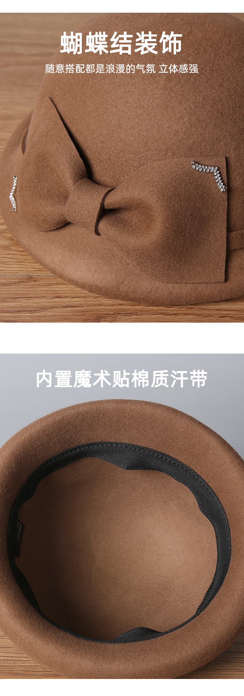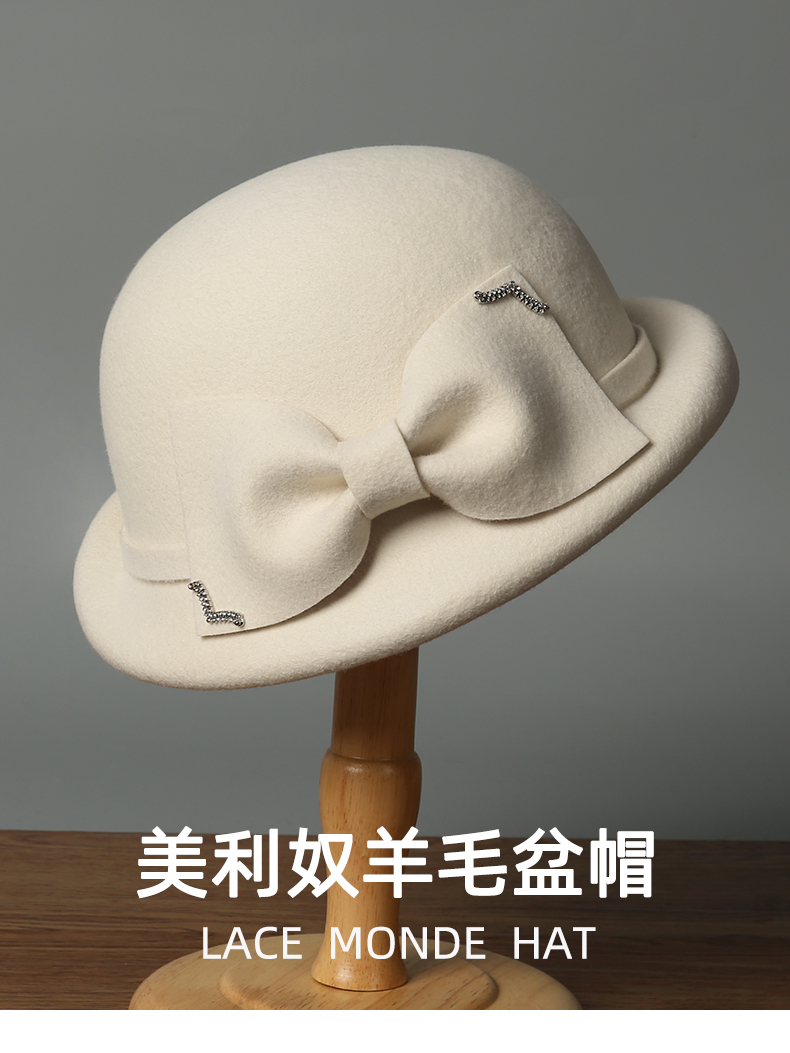 2025 new fashion all-matching bow bucket hat face-looking small wool felt wool autumn and winter women's hat fashion item 中文版