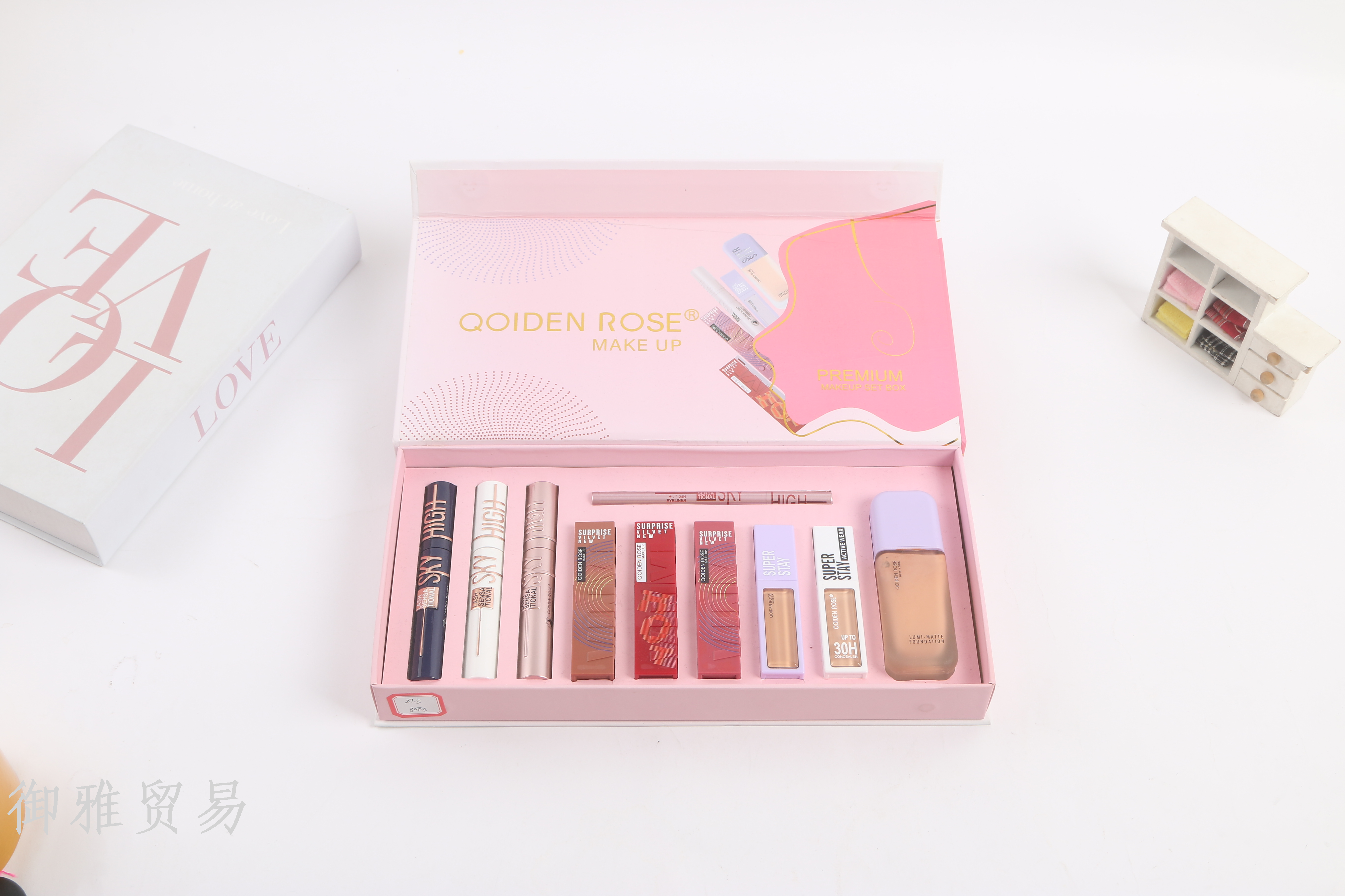 cross-border foreign trade volume mascara concealer waterproof eyeliner liquid foundation matte lip gloss set box 中文版