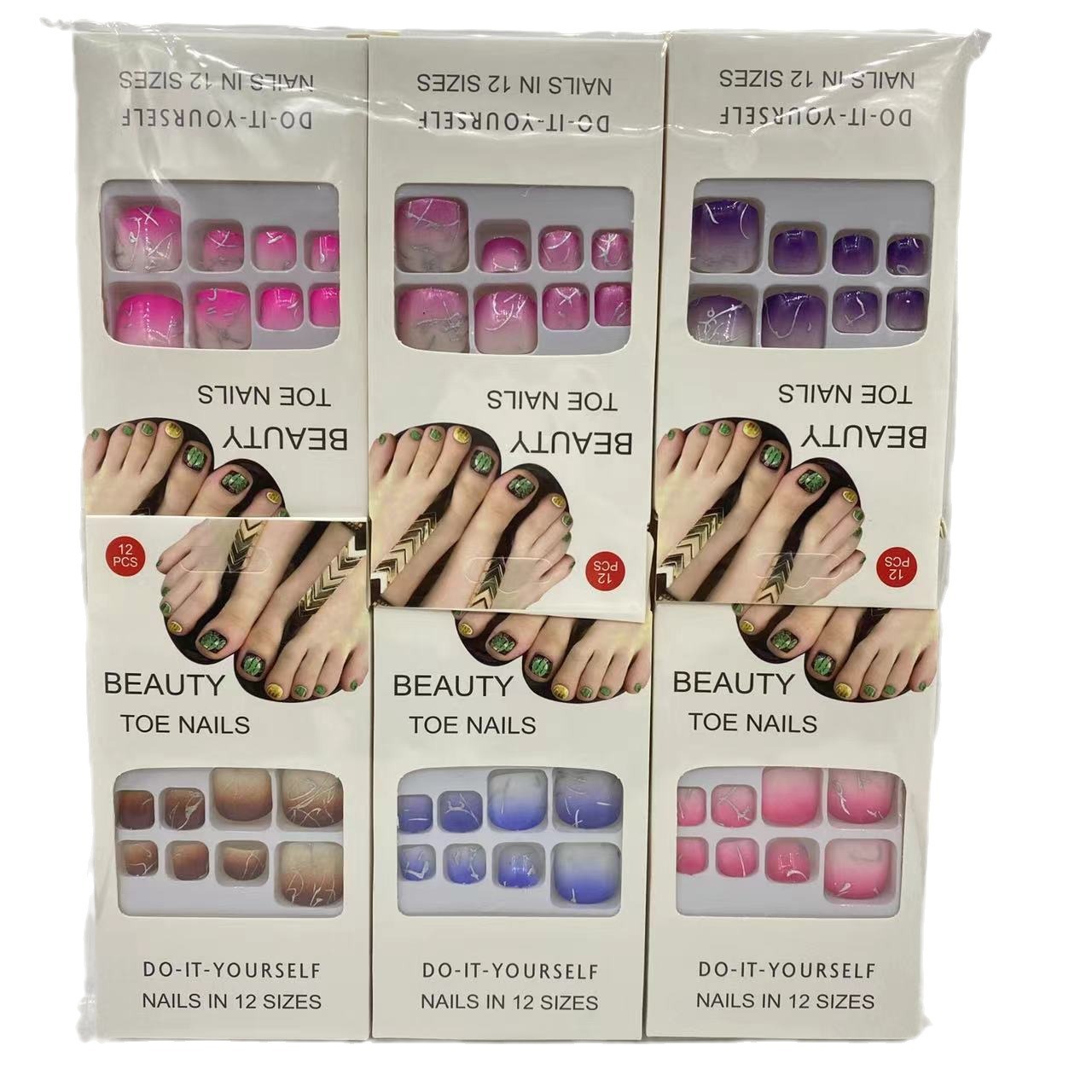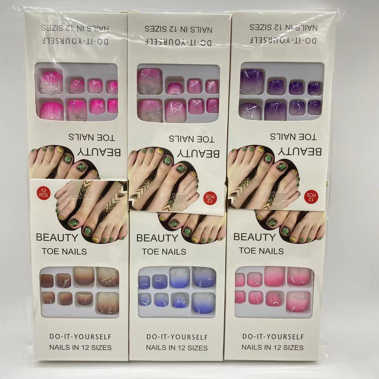 Product Name: New Style Nail Art Wearable Nails 12 Pieces Gradient Aged Nail Stickers with Removable Jelly Glue Cross-border Asia