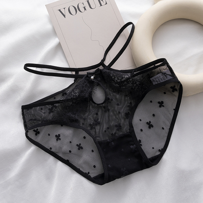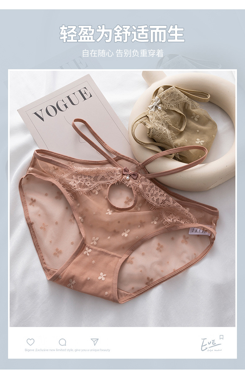 hollow lace women's mid-waist panties comfortable breathable summer lightweight nude feel briefs sexy see-through underpants 中文版