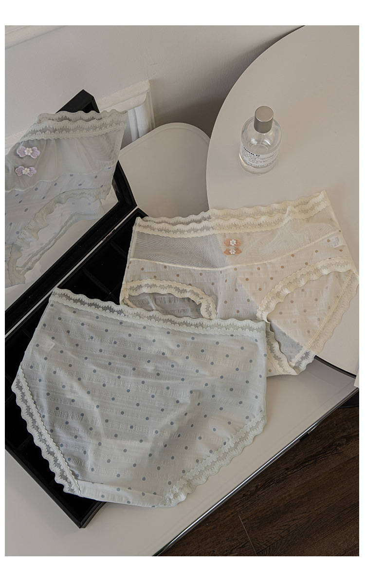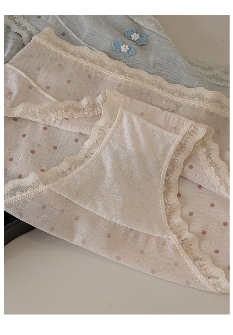 japanese style lace underwear for girls dot sexy breathable purified cotton crotch women's ins puff puff# mid waist briefs 中文版