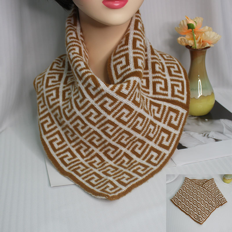 wool knitted scarf warm-keeping and cold-proof triangular binder new versatile bandana jacquard small scarf 中文版