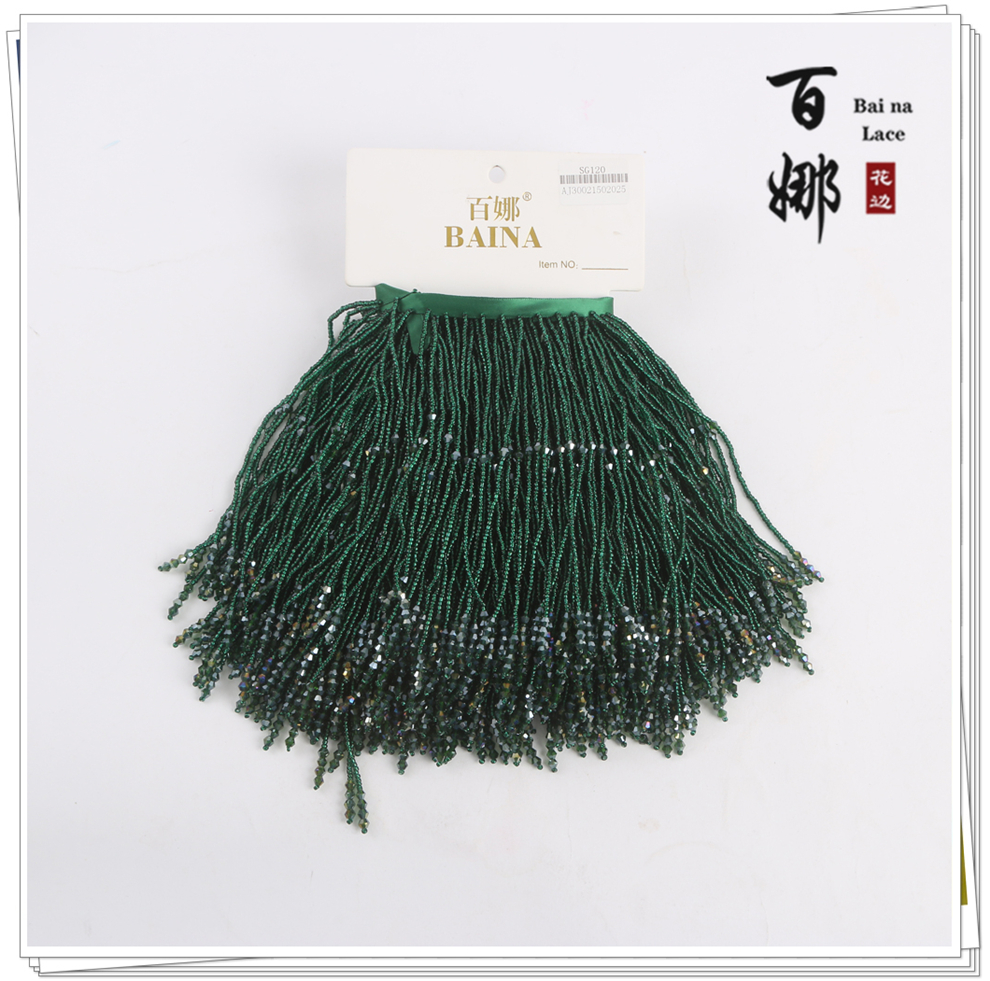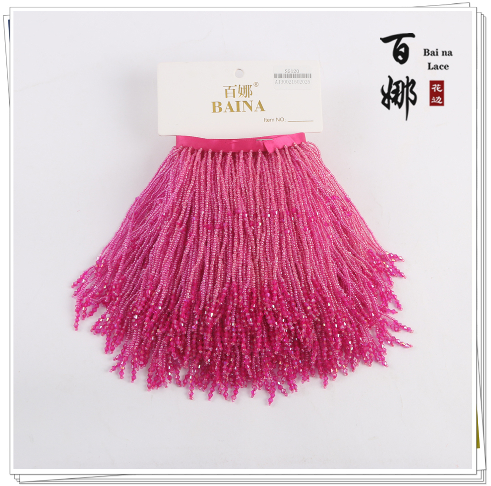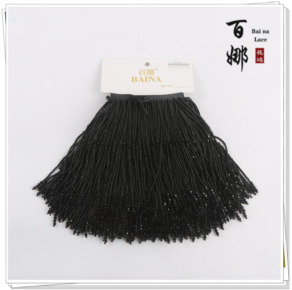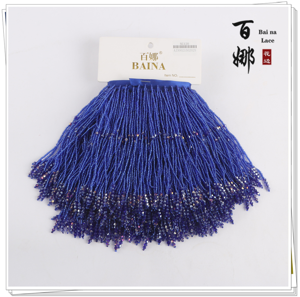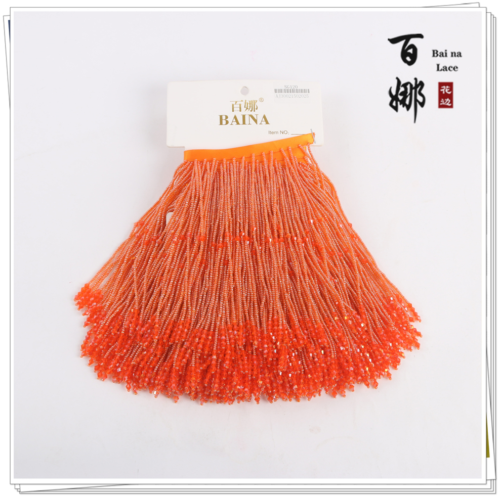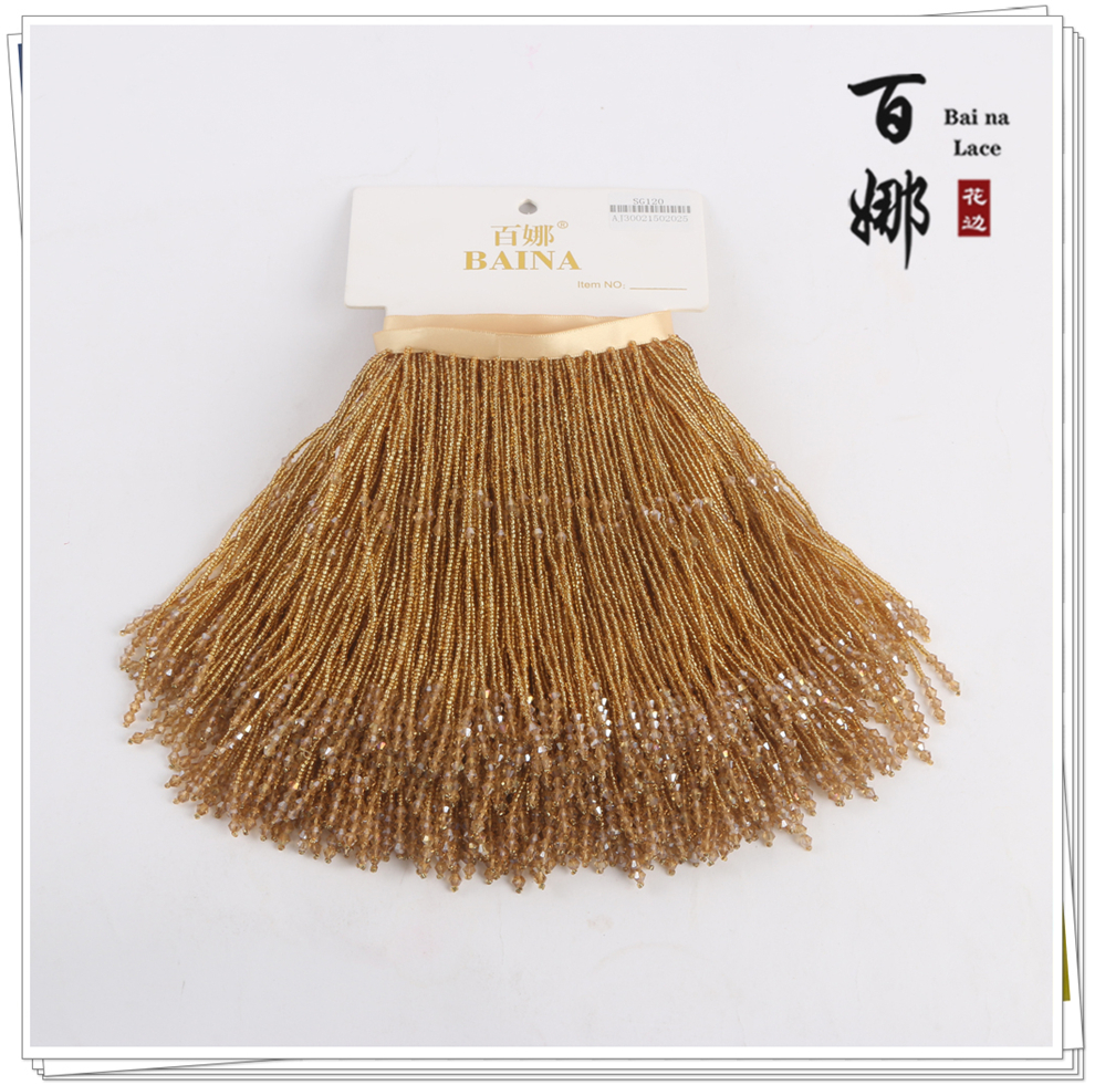 产品名称:SG120圆珠水晶吊坠流苏花边 手工DIY衣服婚纱礼服装饰领裙摆织带