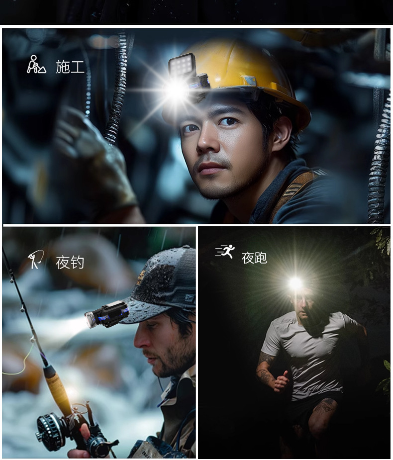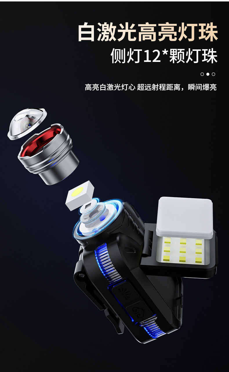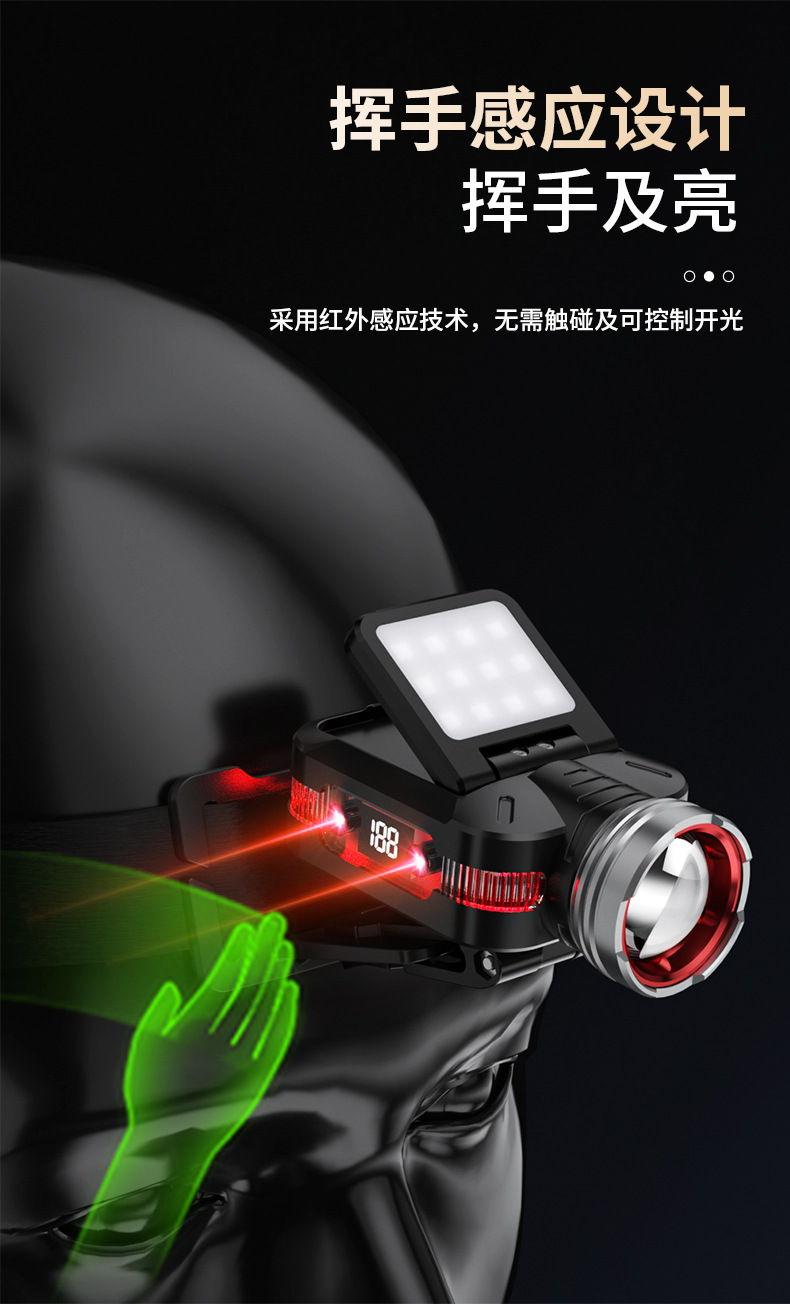 cross-border new arrival usb charging mini zoom headlamp multifunctional induction headlamp cob outdoor camping major headlamp