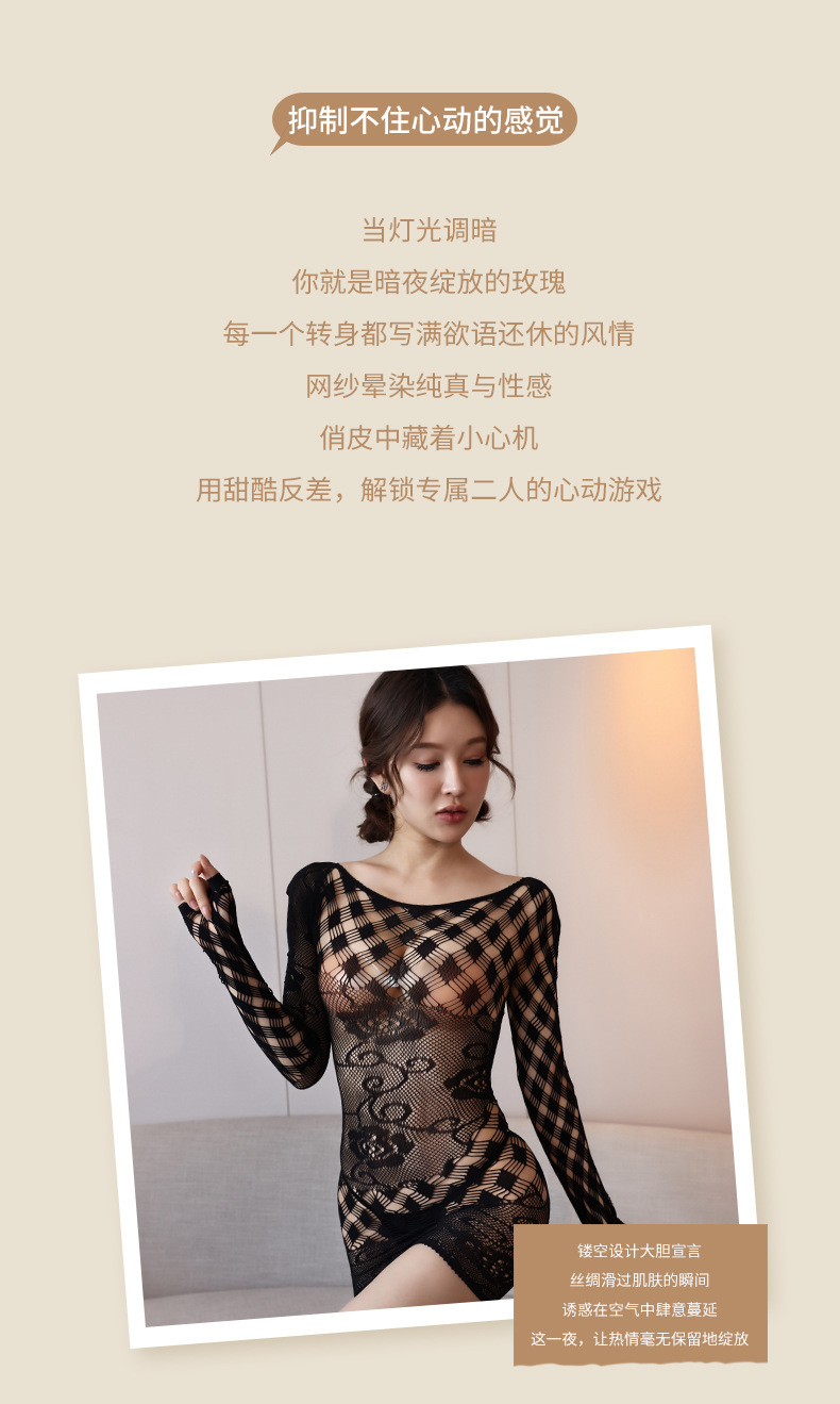 fishnet clothes hollow out underwear tights sexy hip skirt europe and america cross border one-piece jacquard long sleeve see-through factory wholesale 中文版