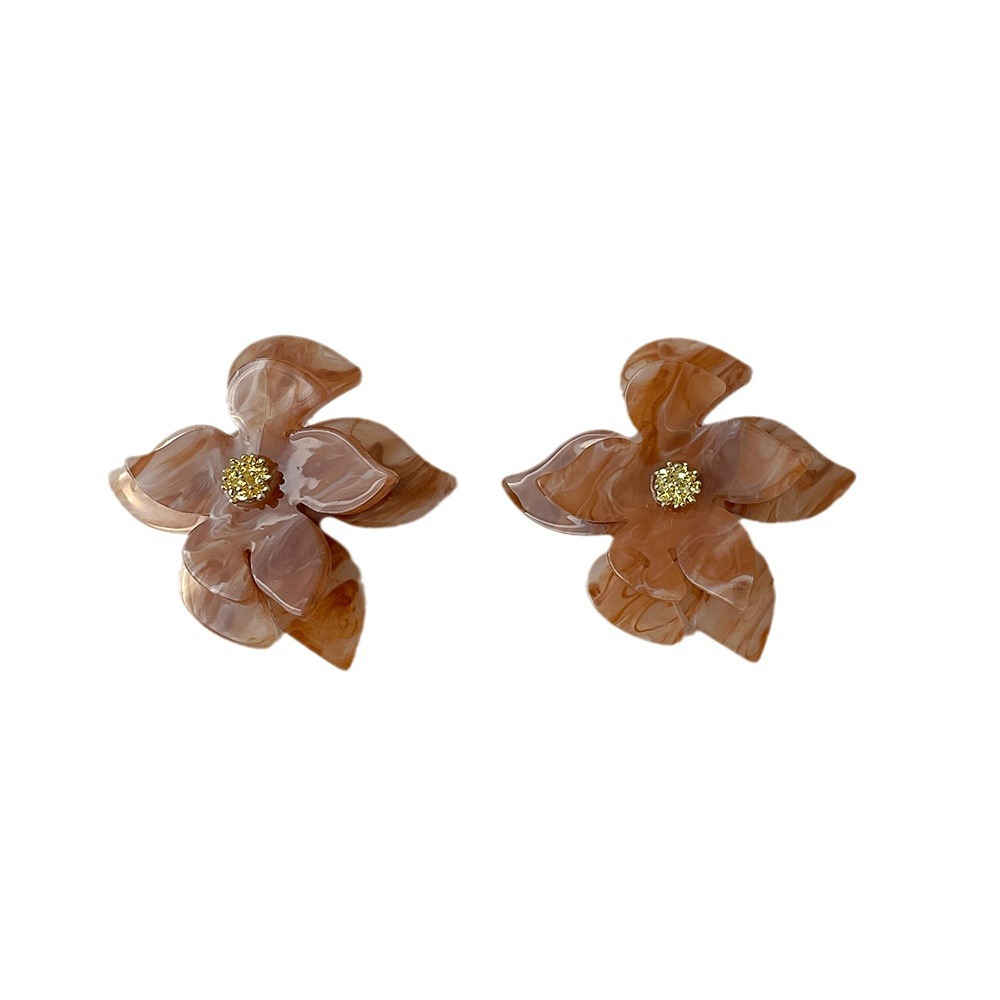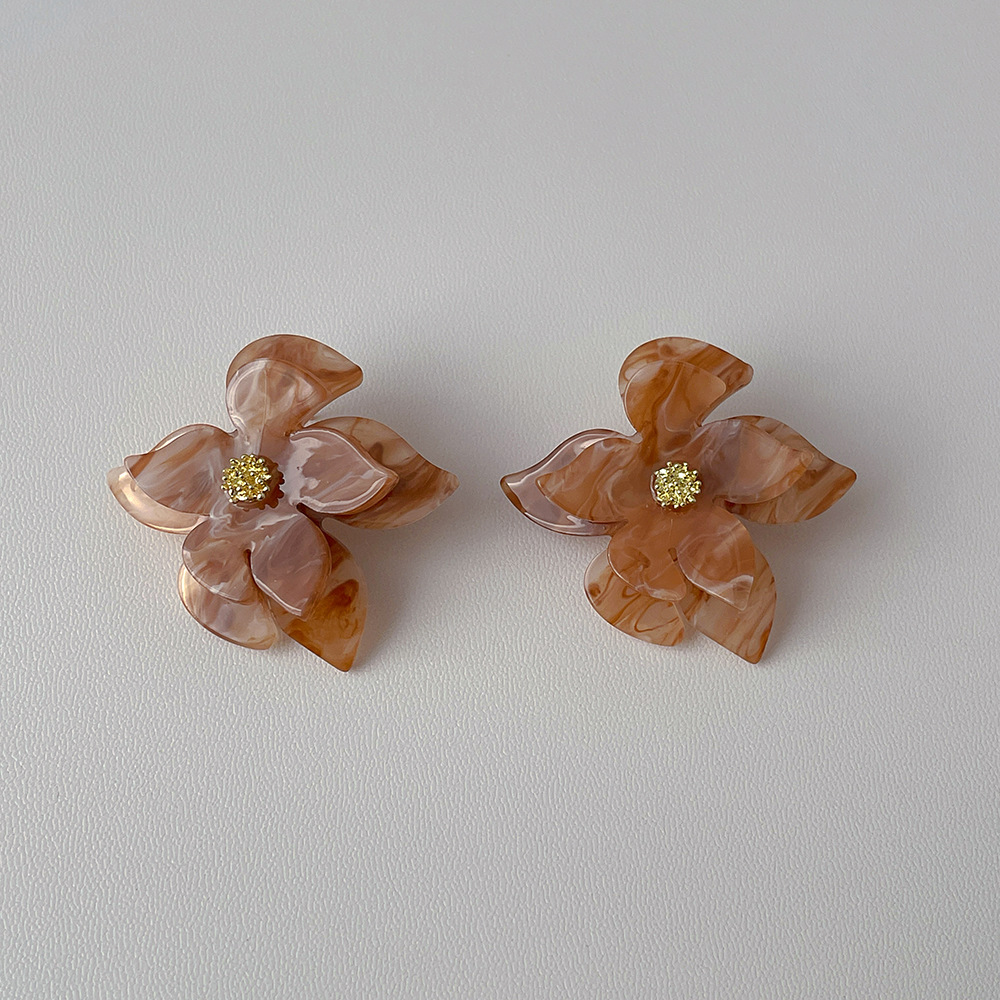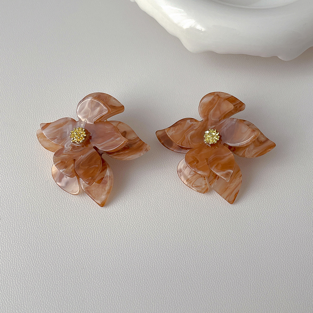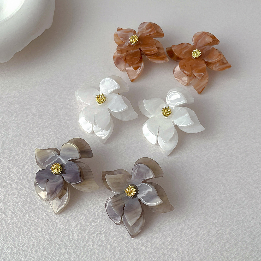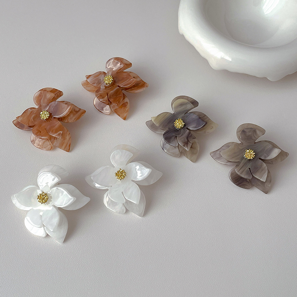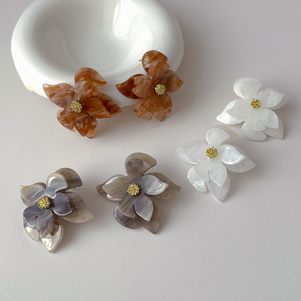 简约复古设计亚克力花朵耳环 银针高级感耳坠欧美夸张耳饰品