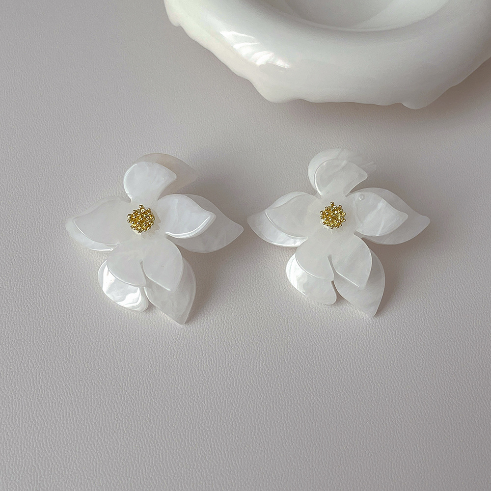 simple retro design acrylic flower earrings silver needle high-grade earrings european and american exaggerated ear jewelry 中文版