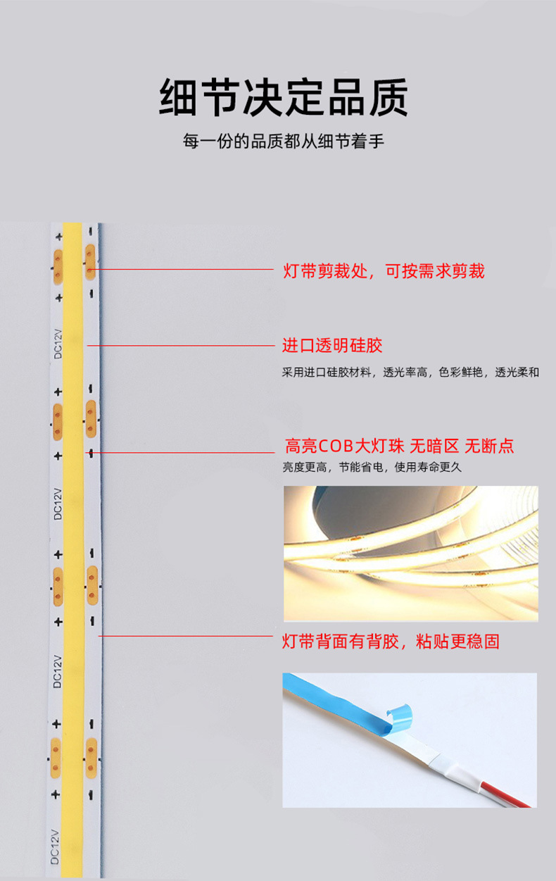 | 12v-cob-480 lamp-5cm cutting (5m/plate customization) | ¥5.93 | 5139 rice available |