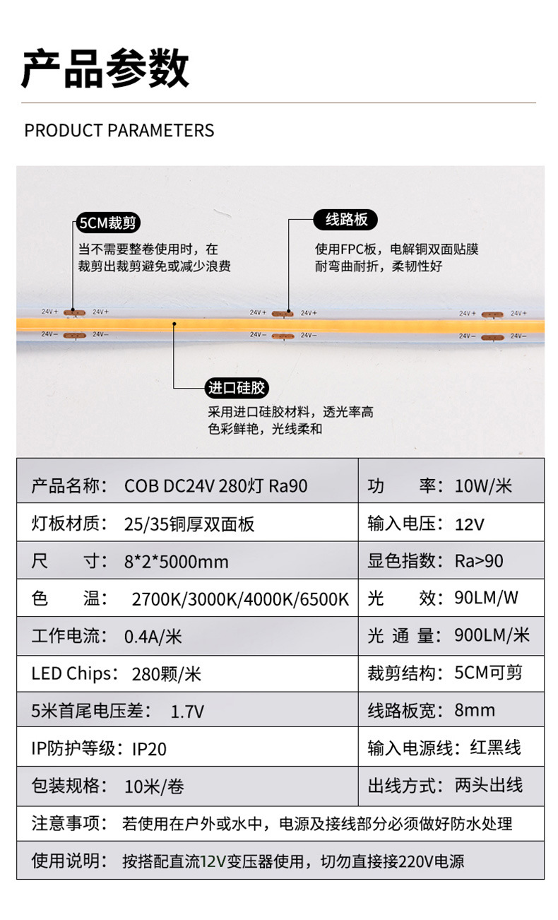 | 12v-cob-280 lamp-5cm cutting (5m/plate) | ¥7.87 | 5221 rice available |