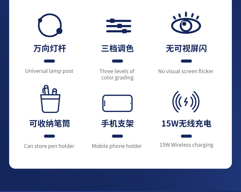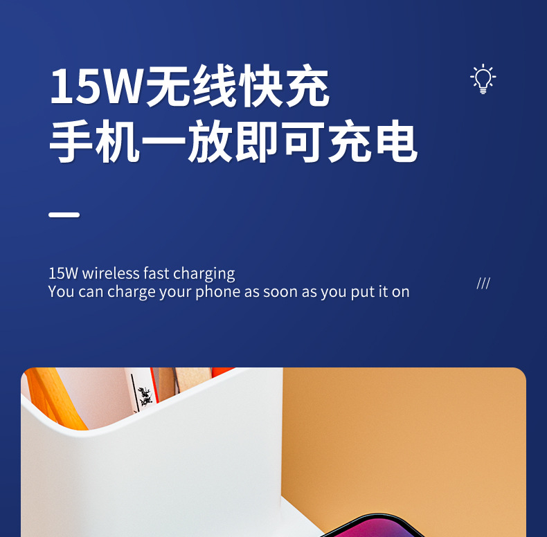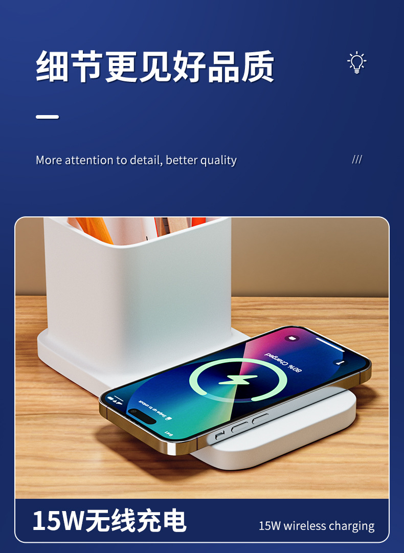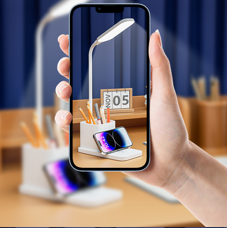 pen holder eye protection desk lamp +15w wireless charging [white]