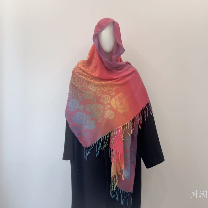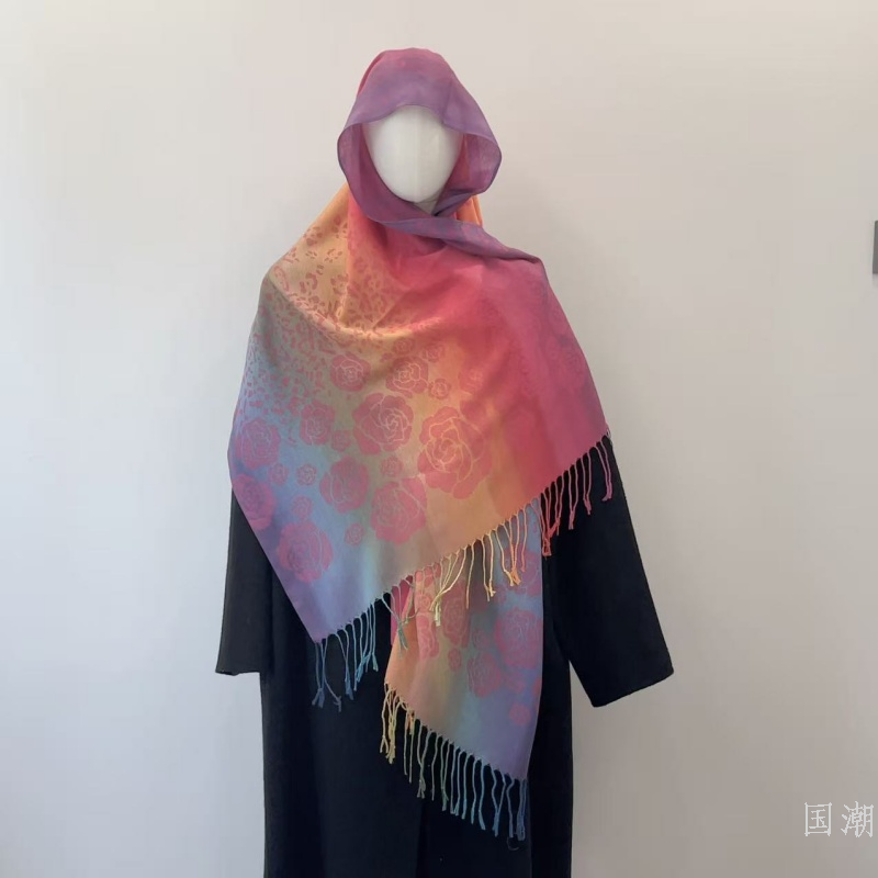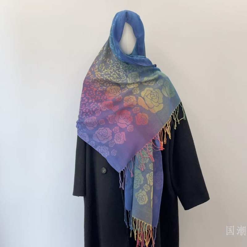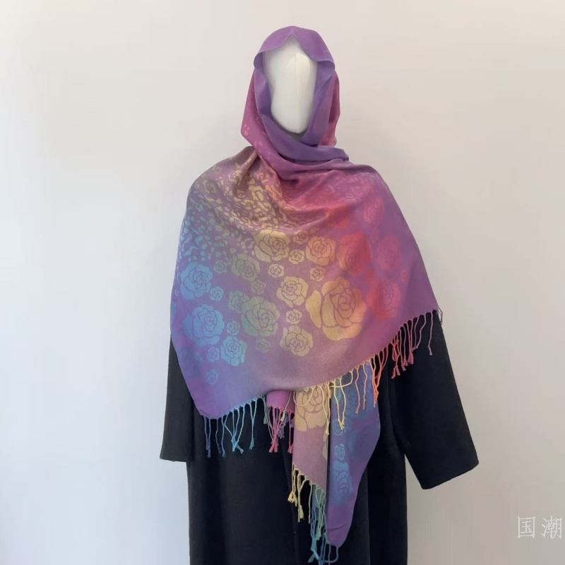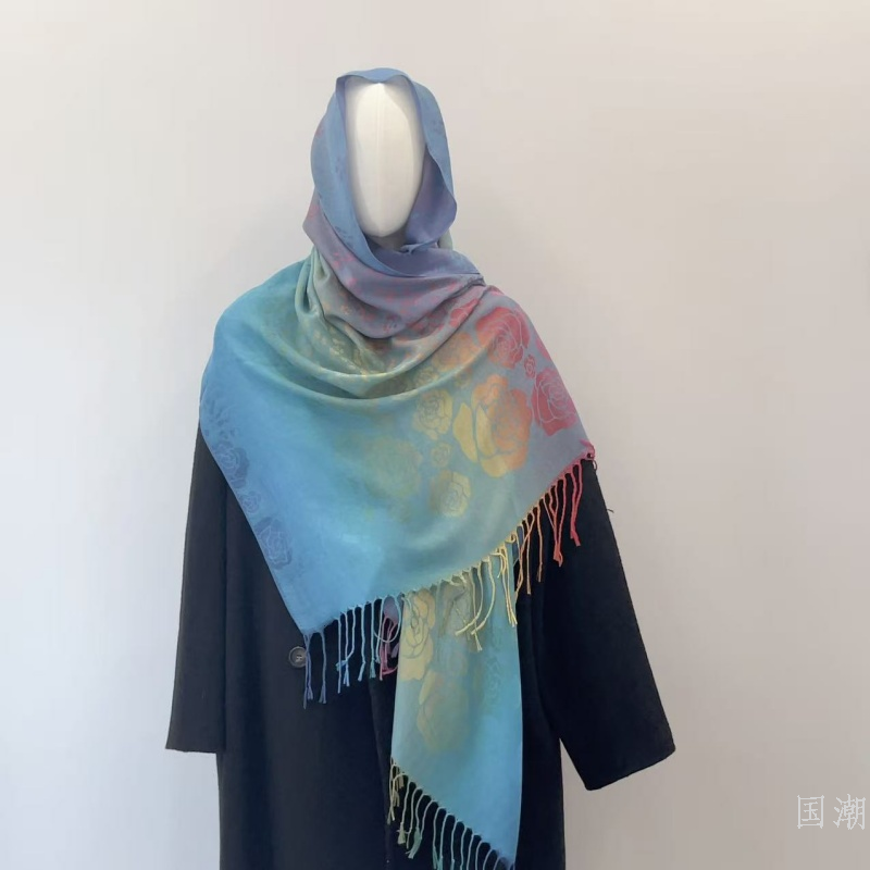 ethnic style gradient tassel scarf jacquard color rose scarf travel photo shawl women's hair towel 中文版