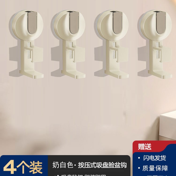 [suction cup]-4 washbasin hooks-milky white