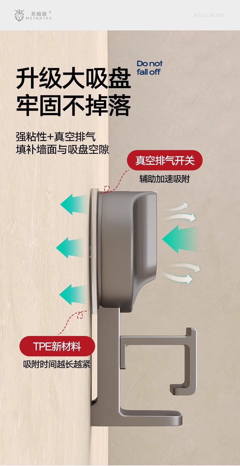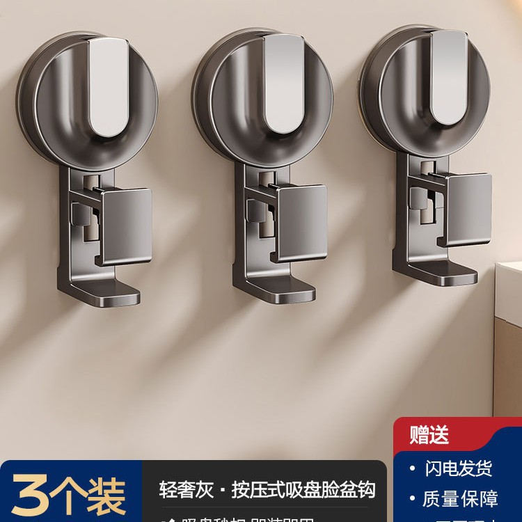 [suction cup]-3 washbasin hooks-gun gray