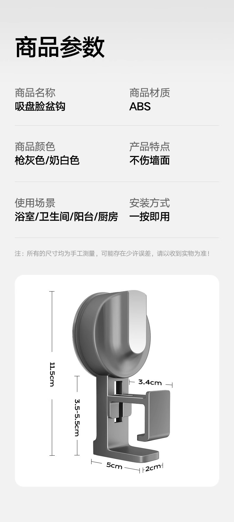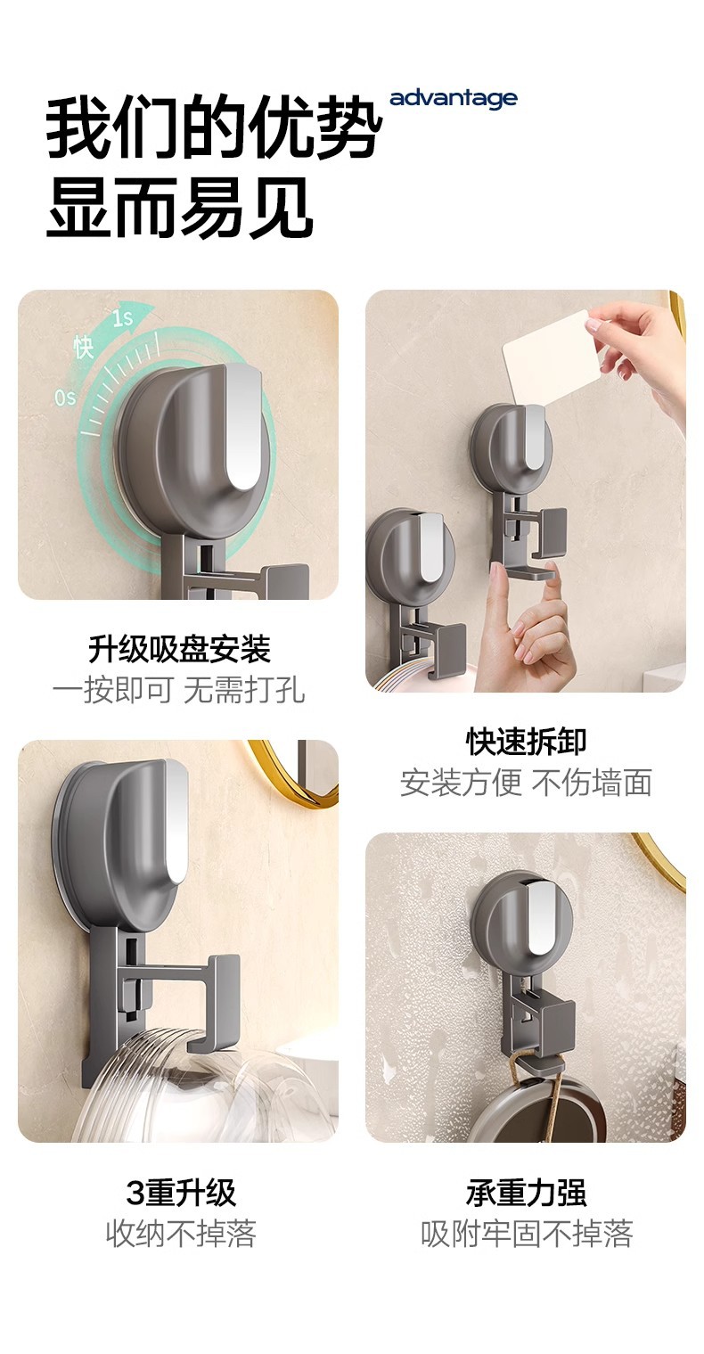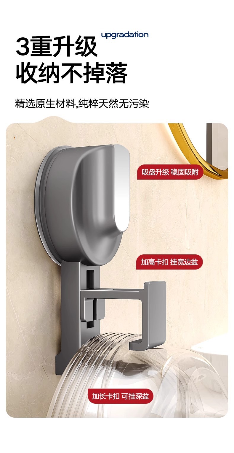 [suction cup]-washbasin hook 1 pack-gun gray