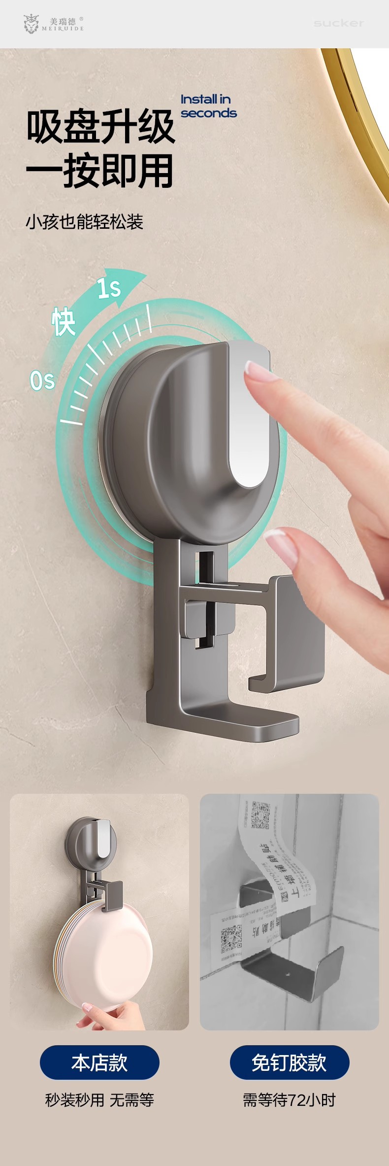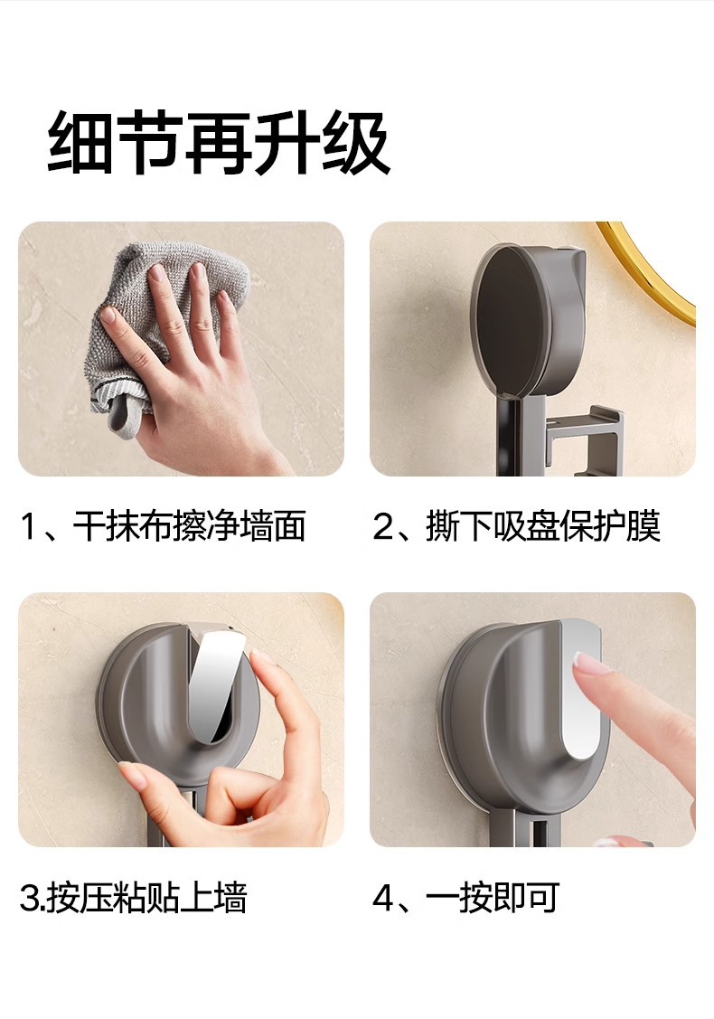 [suction cup]-4 washbasin hooks-gun gray