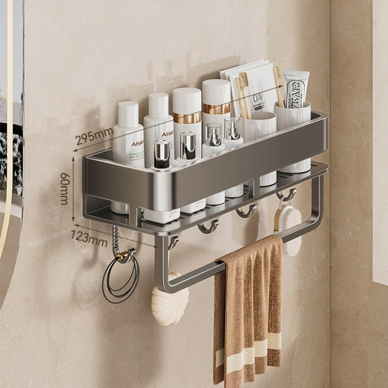 [with hook and rod] gun gray square bathroom shelf-30cm