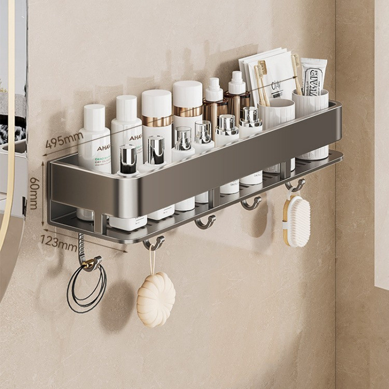 [with hook] gun gray square bathroom shelf-50cm