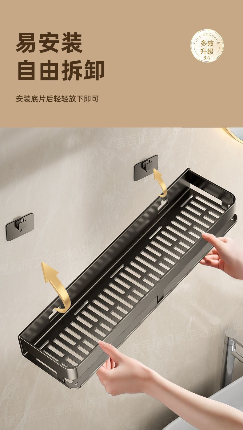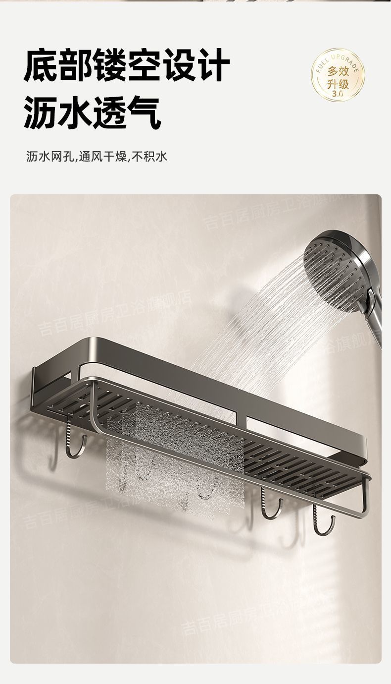[with hook and rod] gun gray square bathroom shelf-40cm