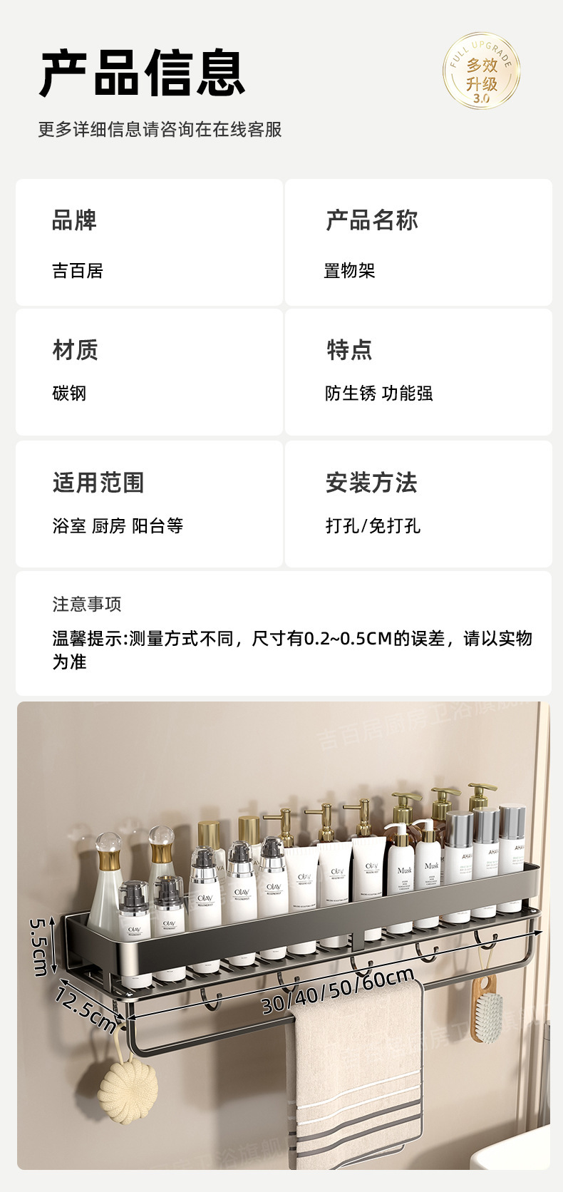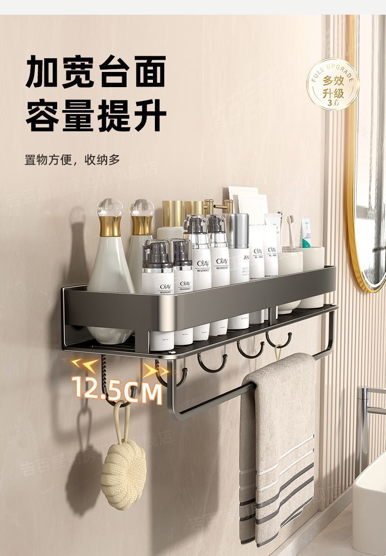 [with hook and rod] double-layer bathroom shelf-50cm