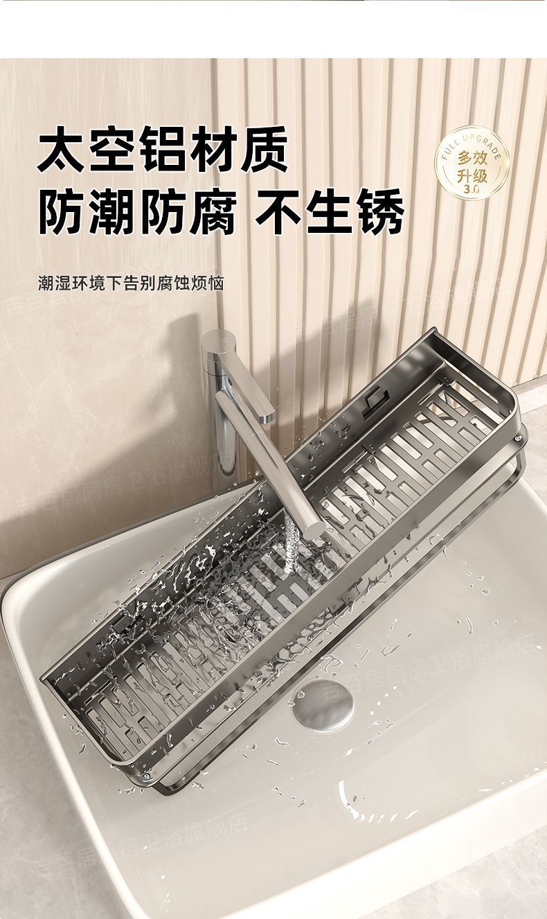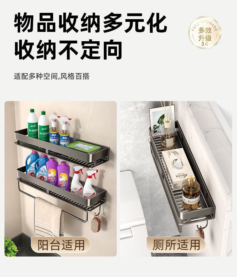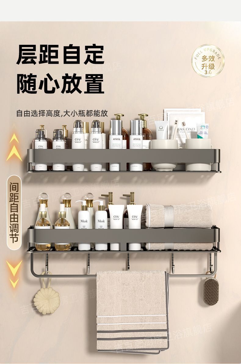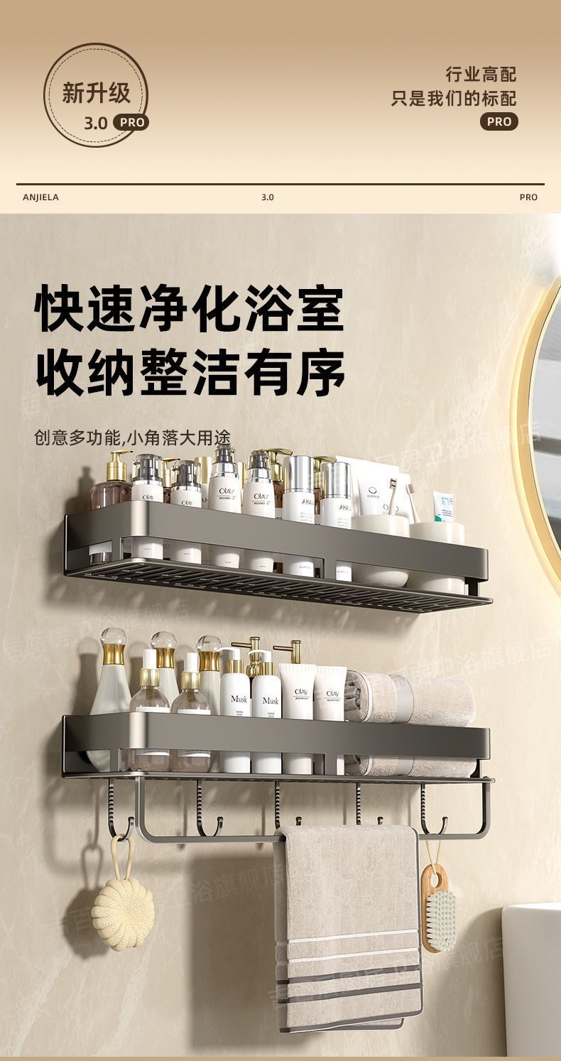 [with hook and rod] double-layer bathroom shelf-30cm