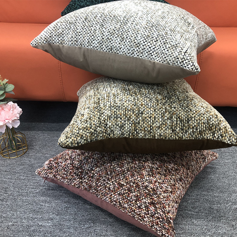 amazon new two-color particle chenille pillow yarn-dyed model room bay window lumbar support pillow bedside large backrest cushion 中文版