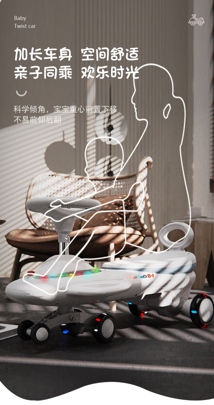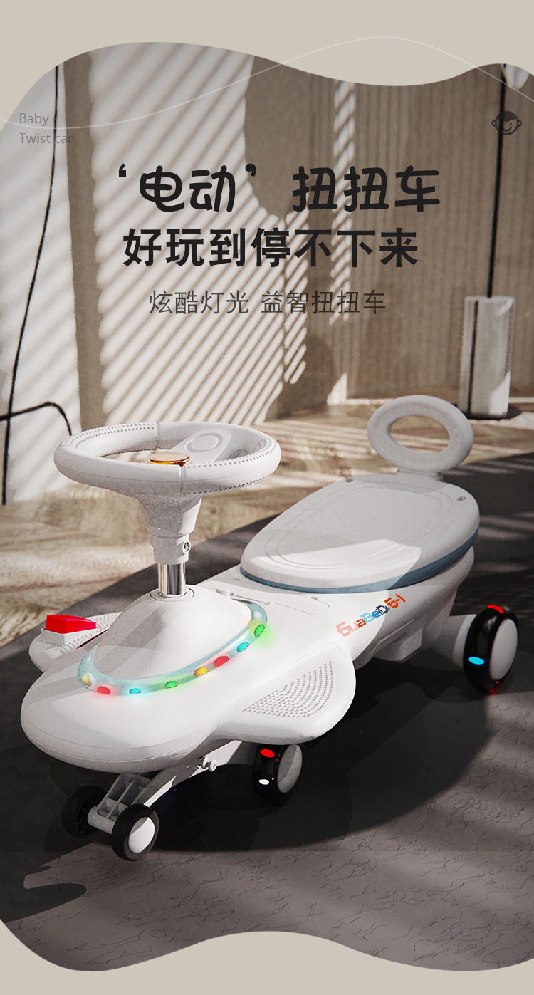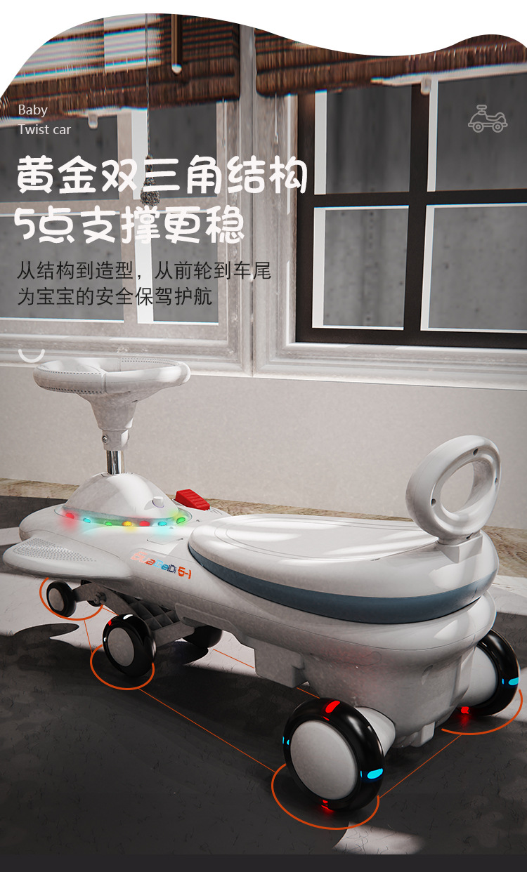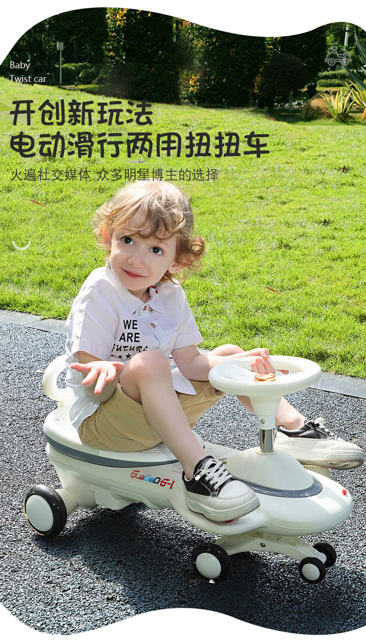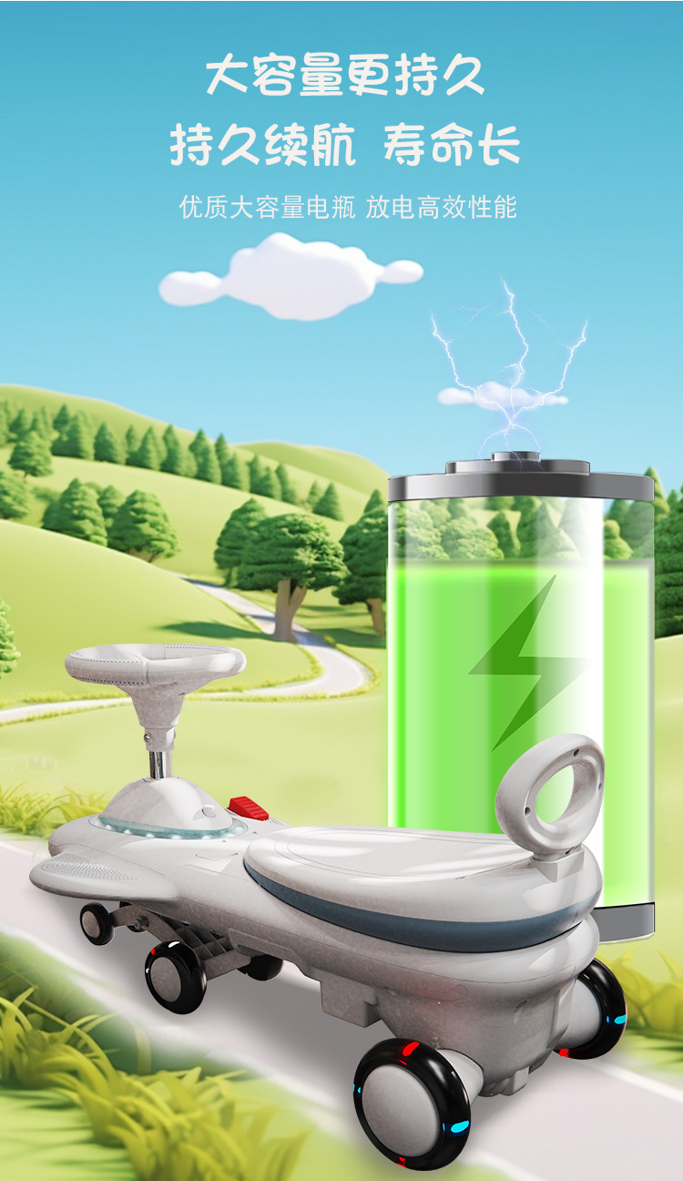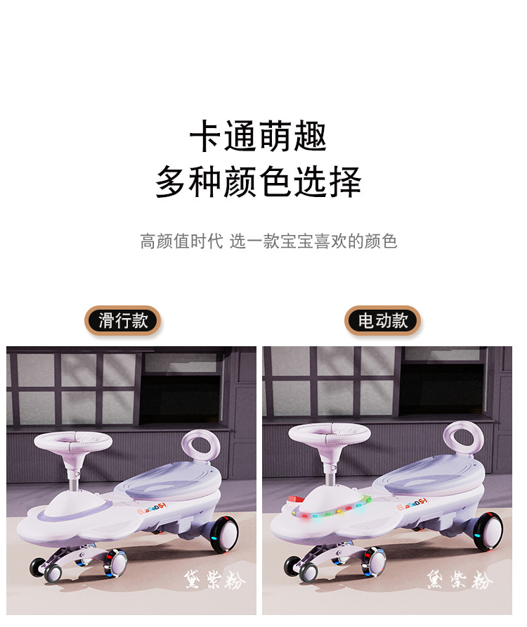 cross-border children's electric swing car drop-resistant anti-flip extended version new rechargeable sliding toy car 中文版