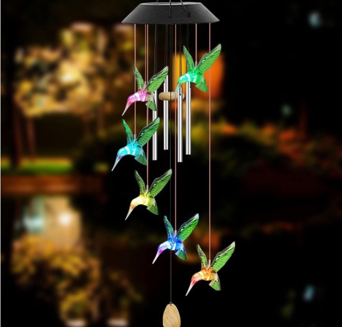 cross-border led hummingbird butterfly solar wind chime courtyard jingling bell star and moon shape outdoor decorative chandelier