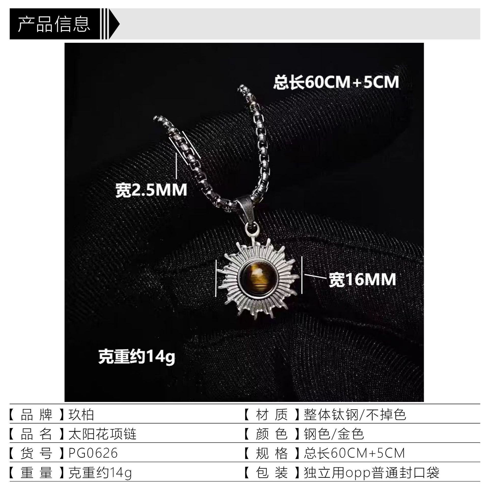 steel sunflower necklace 60 + 5cm