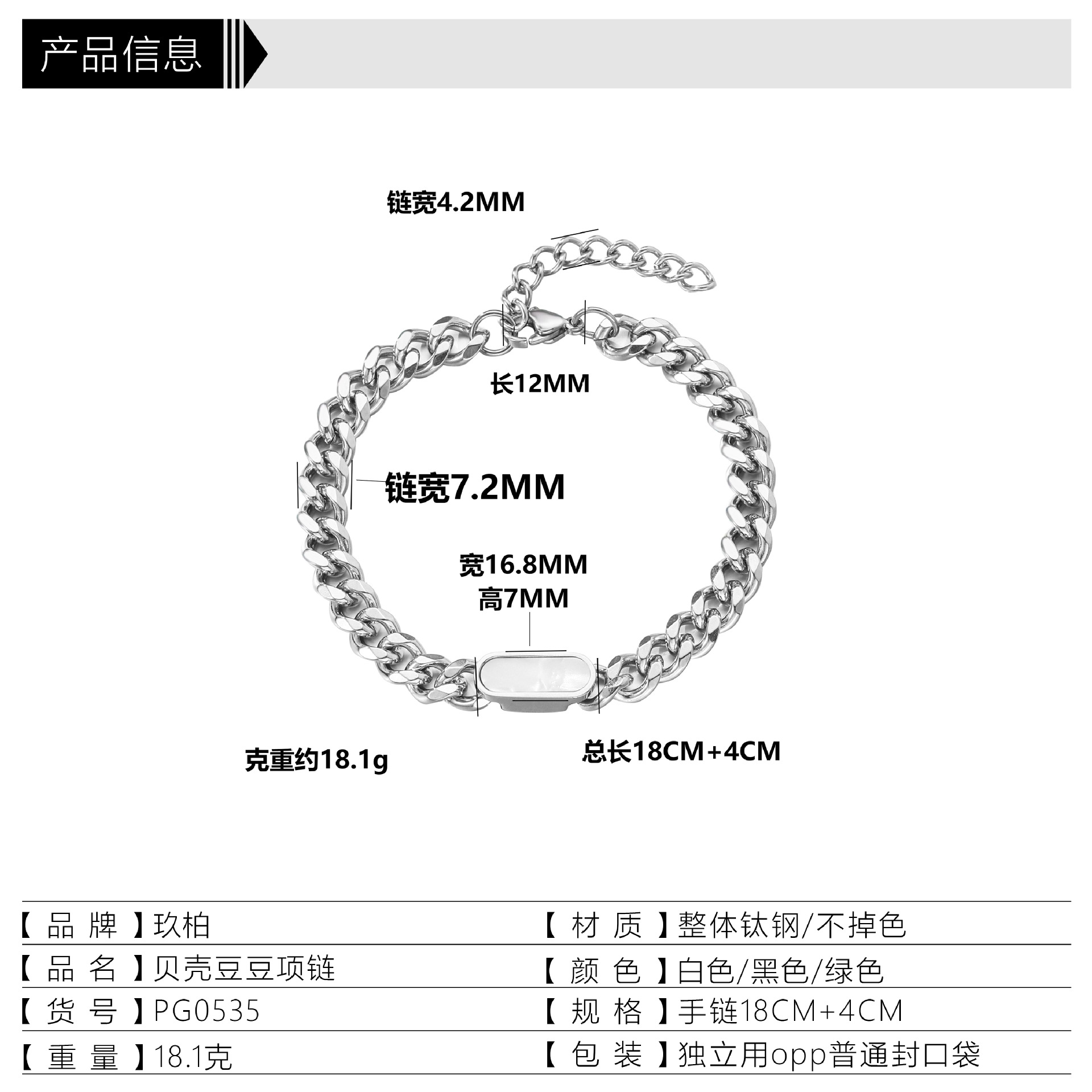 white shell cuban bracelet 18 + 4cm