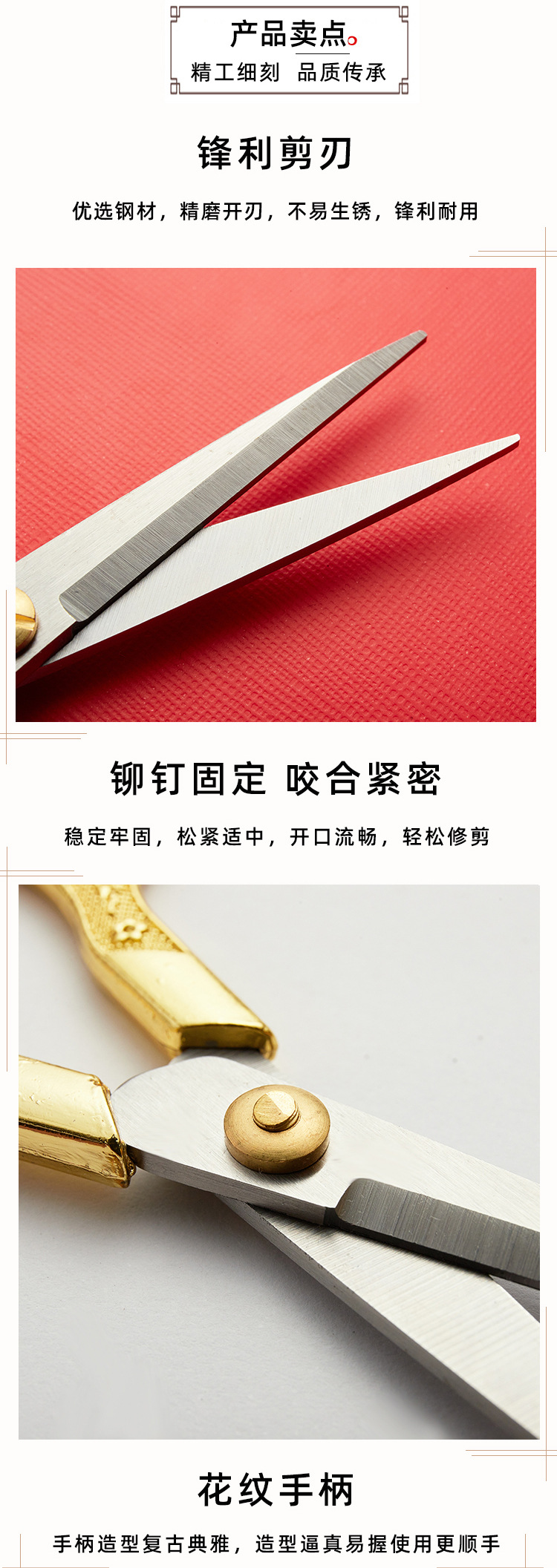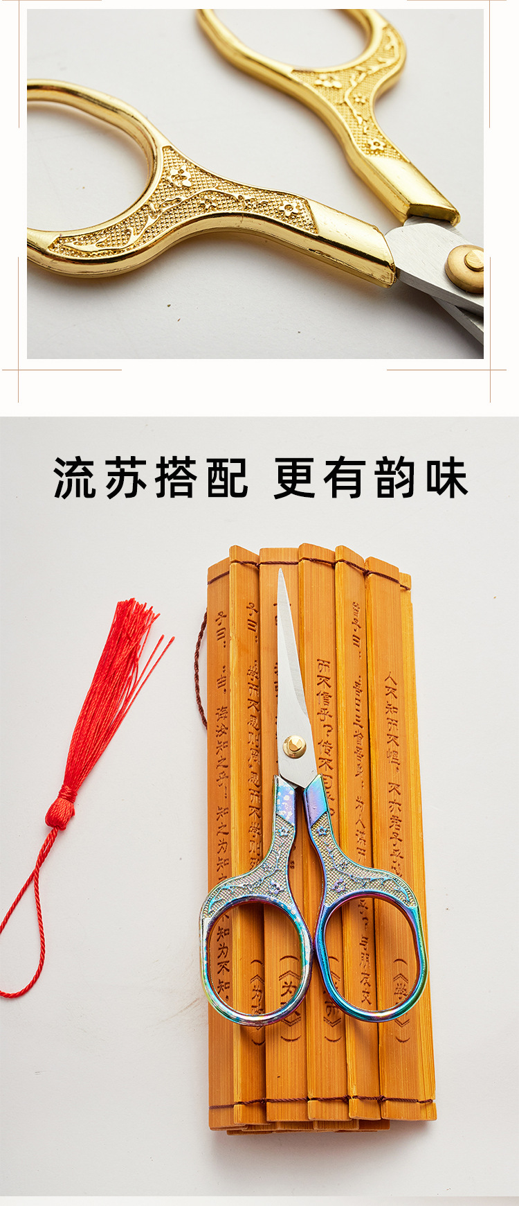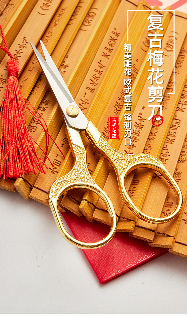 gold plum pattern handle retro scissors