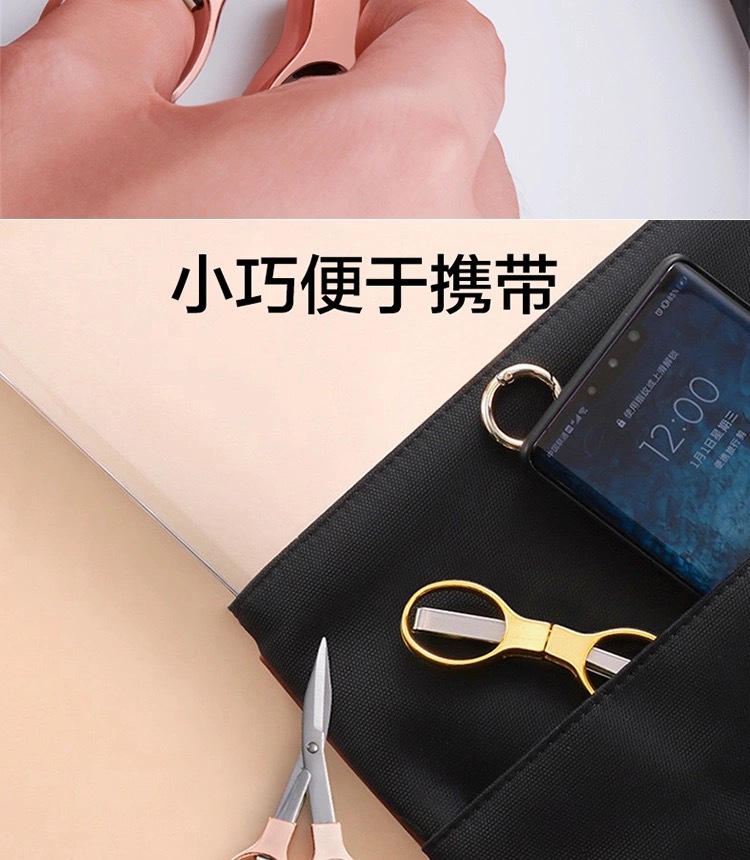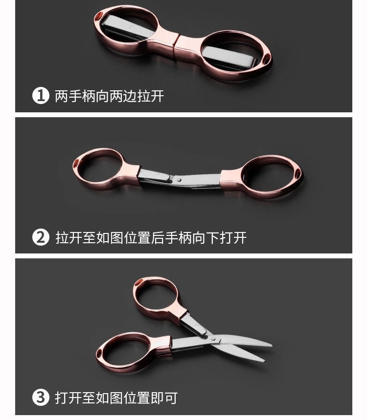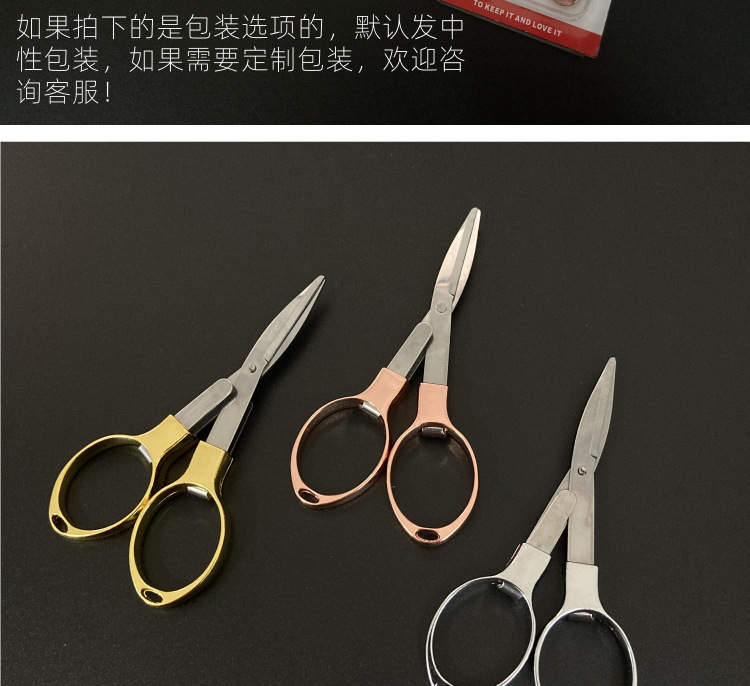 zinc alloy handle folding scissors/rose gold (pp bag simple)