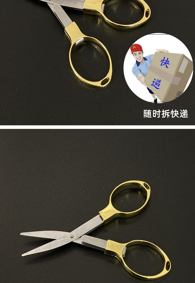 zinc alloy handle folding scissors/gold (paper card)