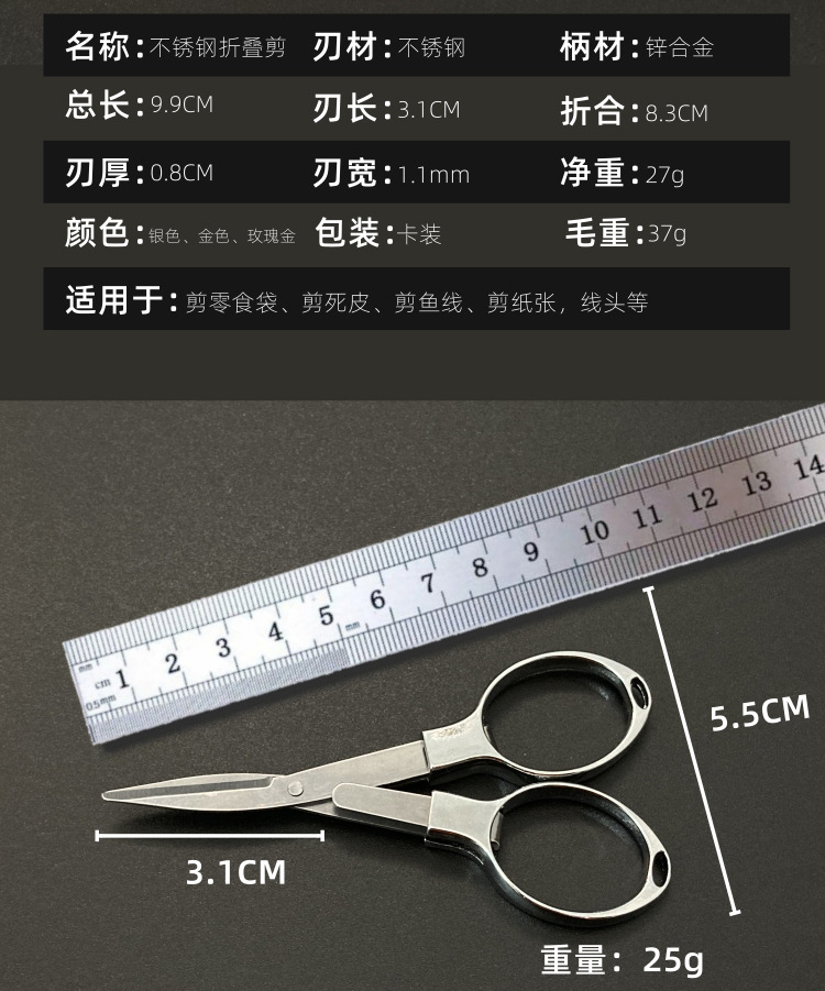 zinc alloy handle folding scissors/silver (pp bag simple package)