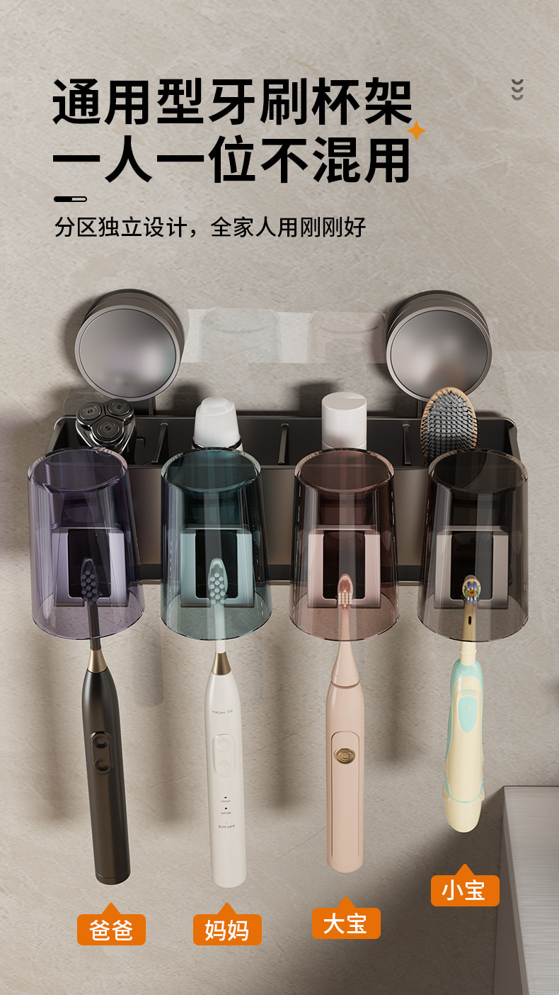 [four-person model] suction toothbrush holder +4 gargle cup