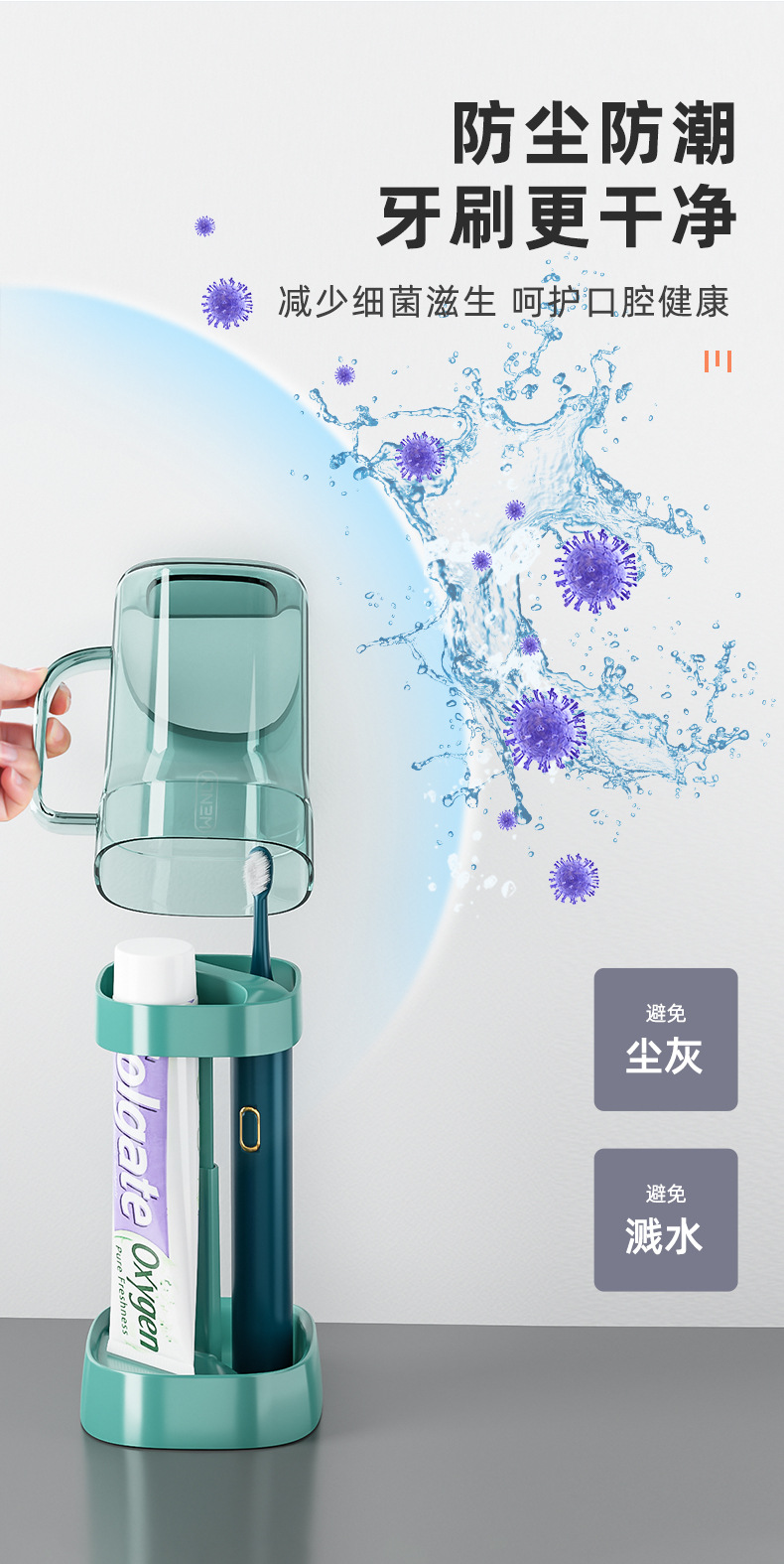 antibacterial dual-purpose washing cup-square belt handle-green