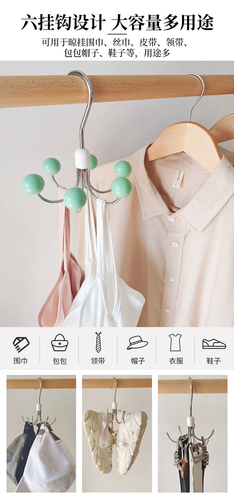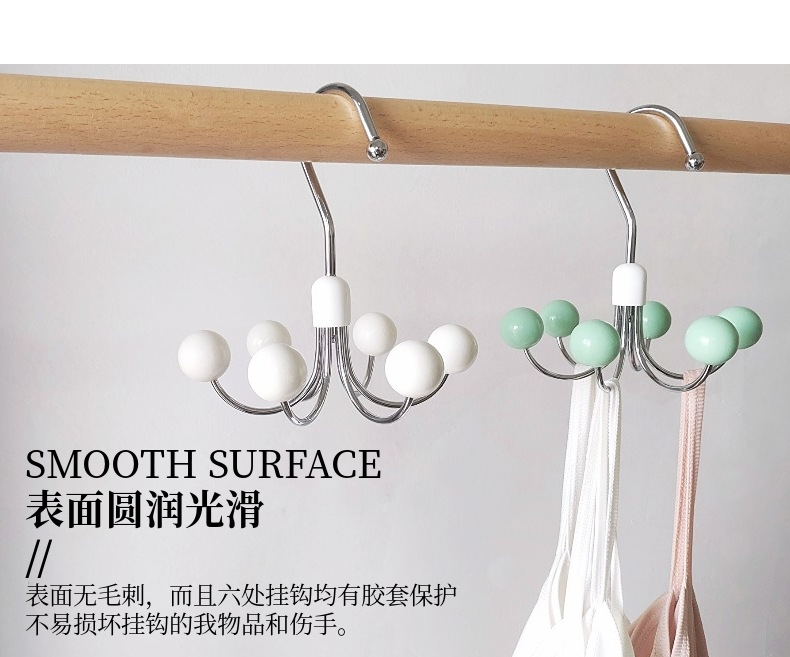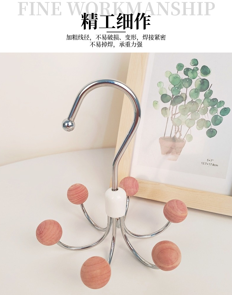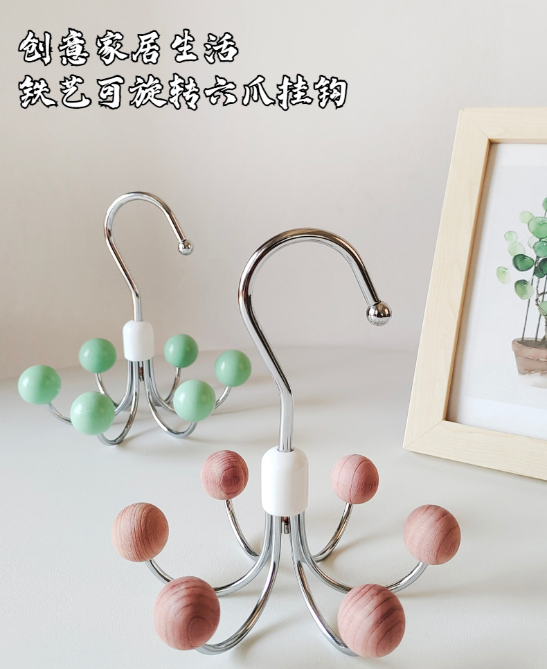 six-claw hook silver white wooden bead