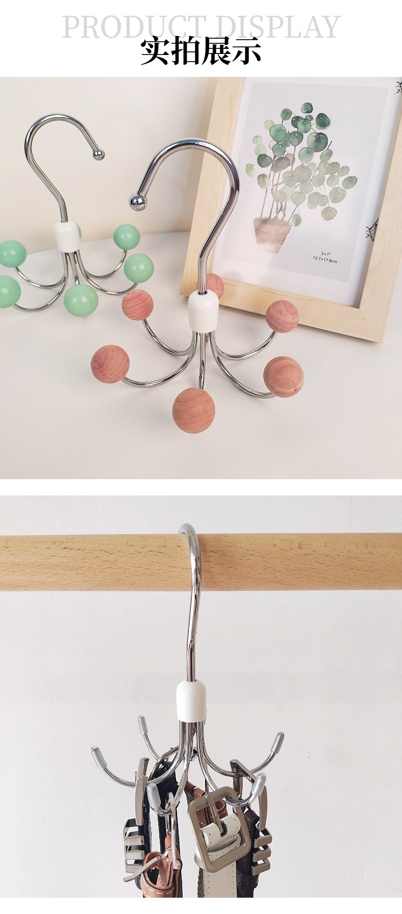 six-claw hook silver pink wooden bead