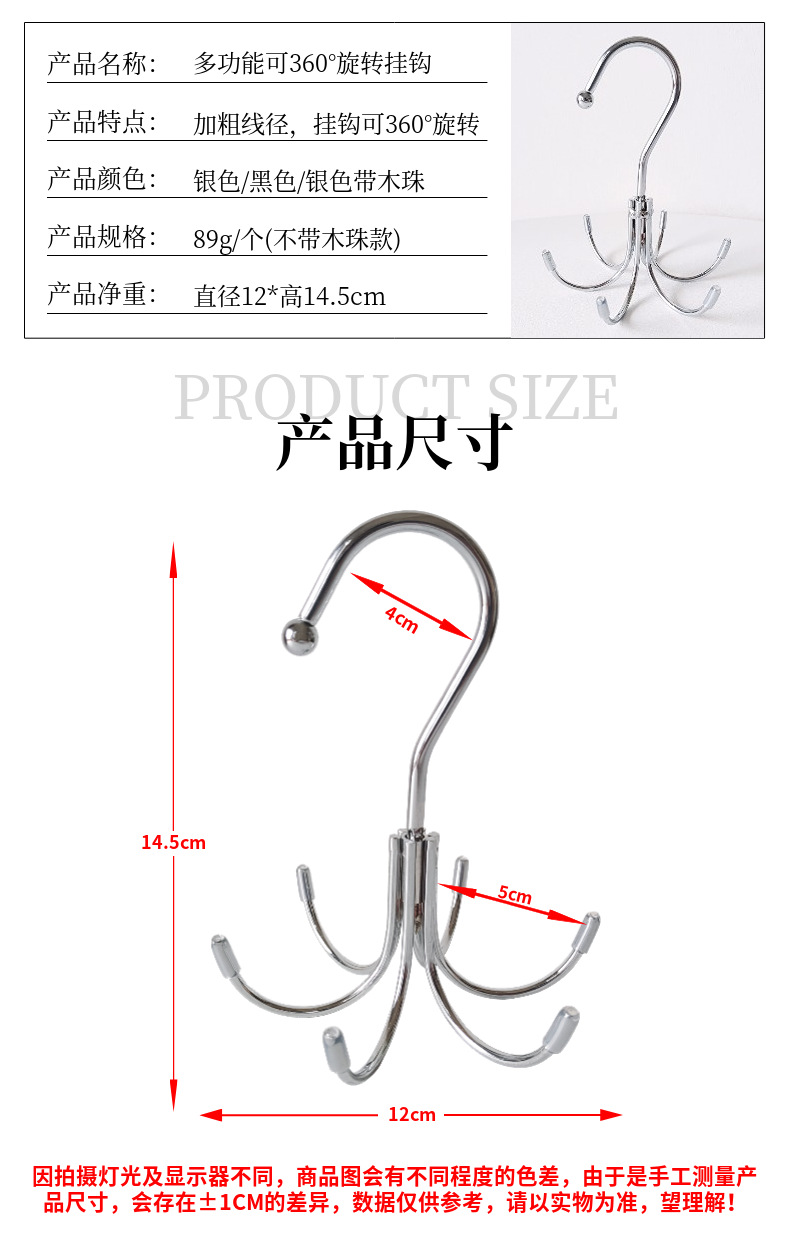 six-claw hook silver black wooden bead