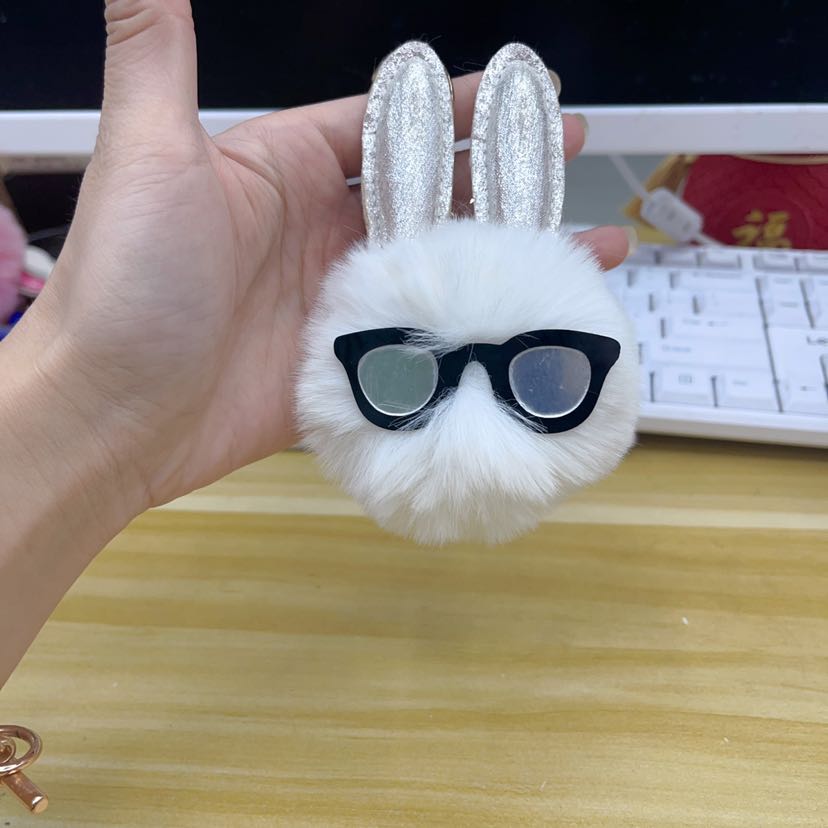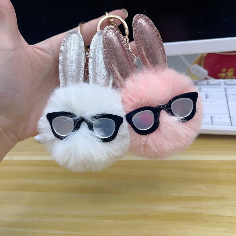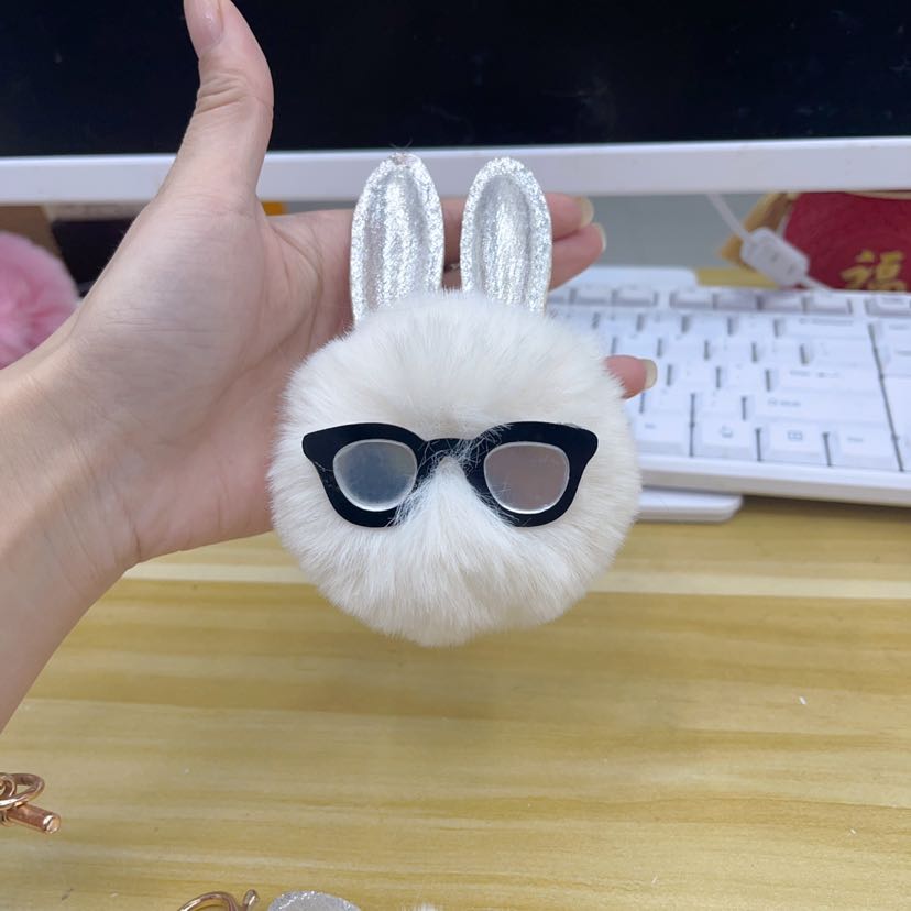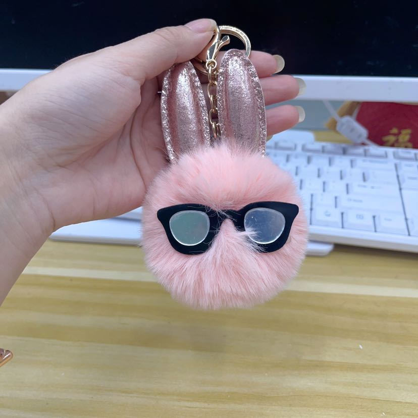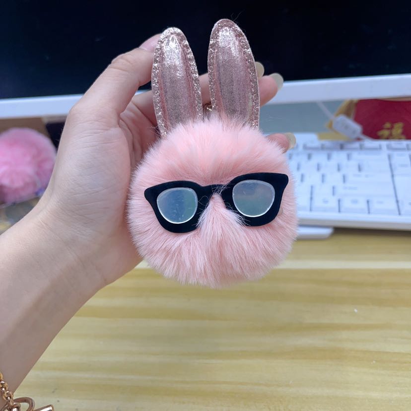 rabbit fur ball keychain, pompons, hairy ball pendant bunny