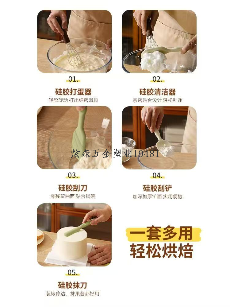 Silicone baking series: scraper. Scraper. Shovel. Egg beater. Egg beater cleaning knife. Silica gel filter screen