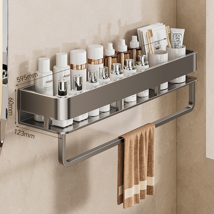 [with rod] gun gray square bathroom shelf-60cm