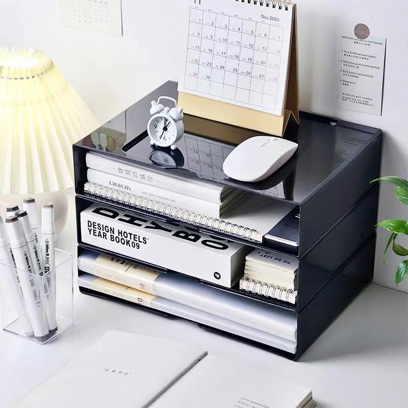 black stackable desktop storage box