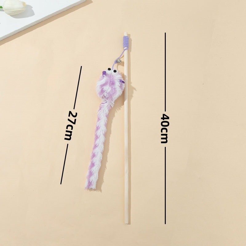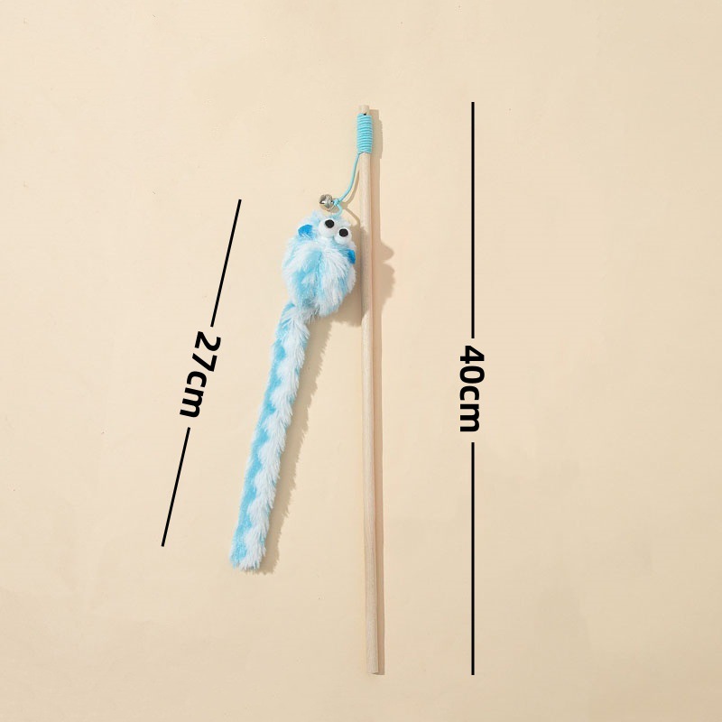 cross-border preferred new wooden pole teaser long tail mouse with bell funny self-hi toy factory direct supply 中文版